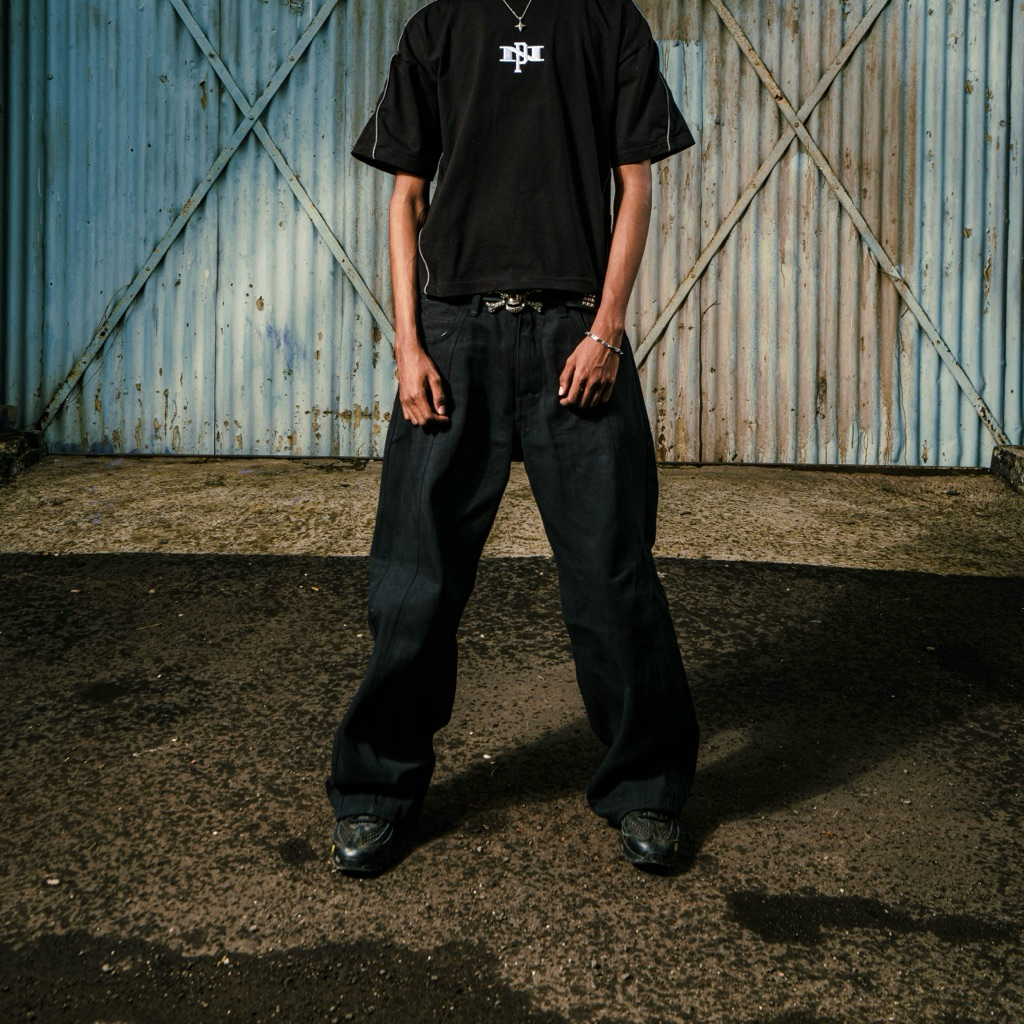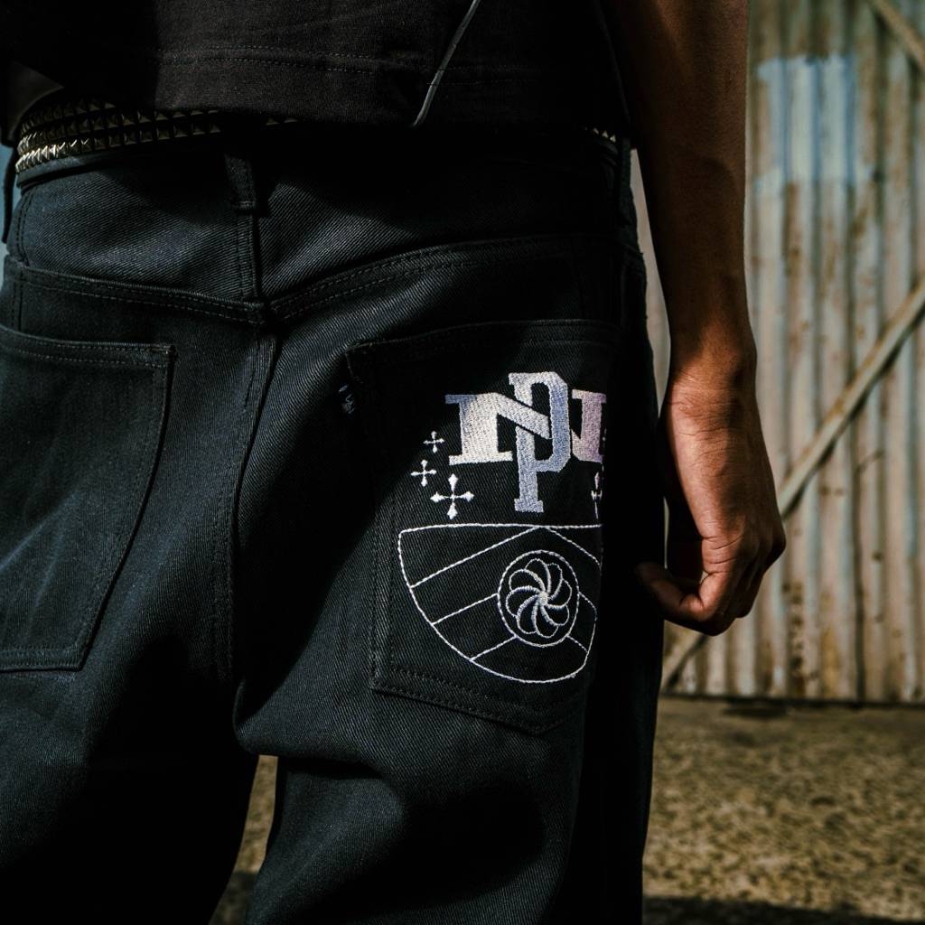 Neoplane - Baggy Jeans Vell Unisex Black Denim Tebal