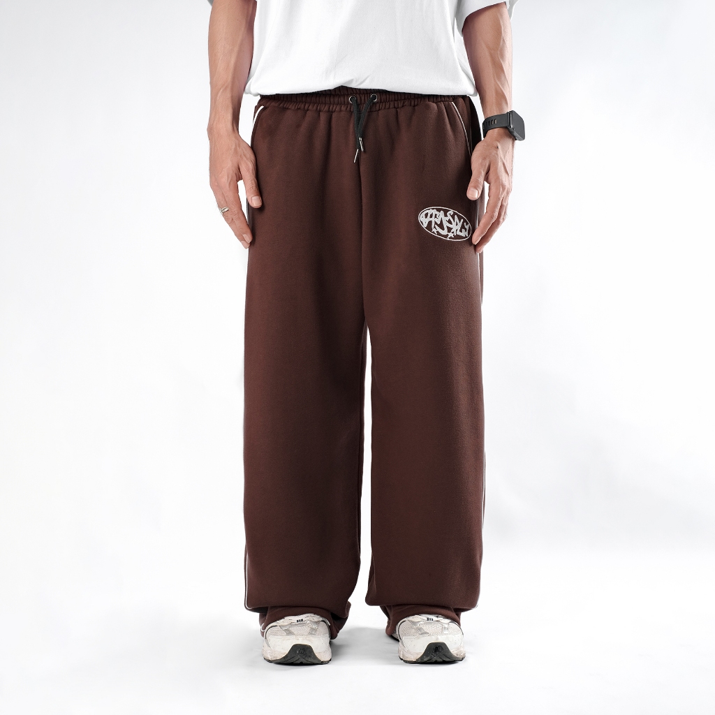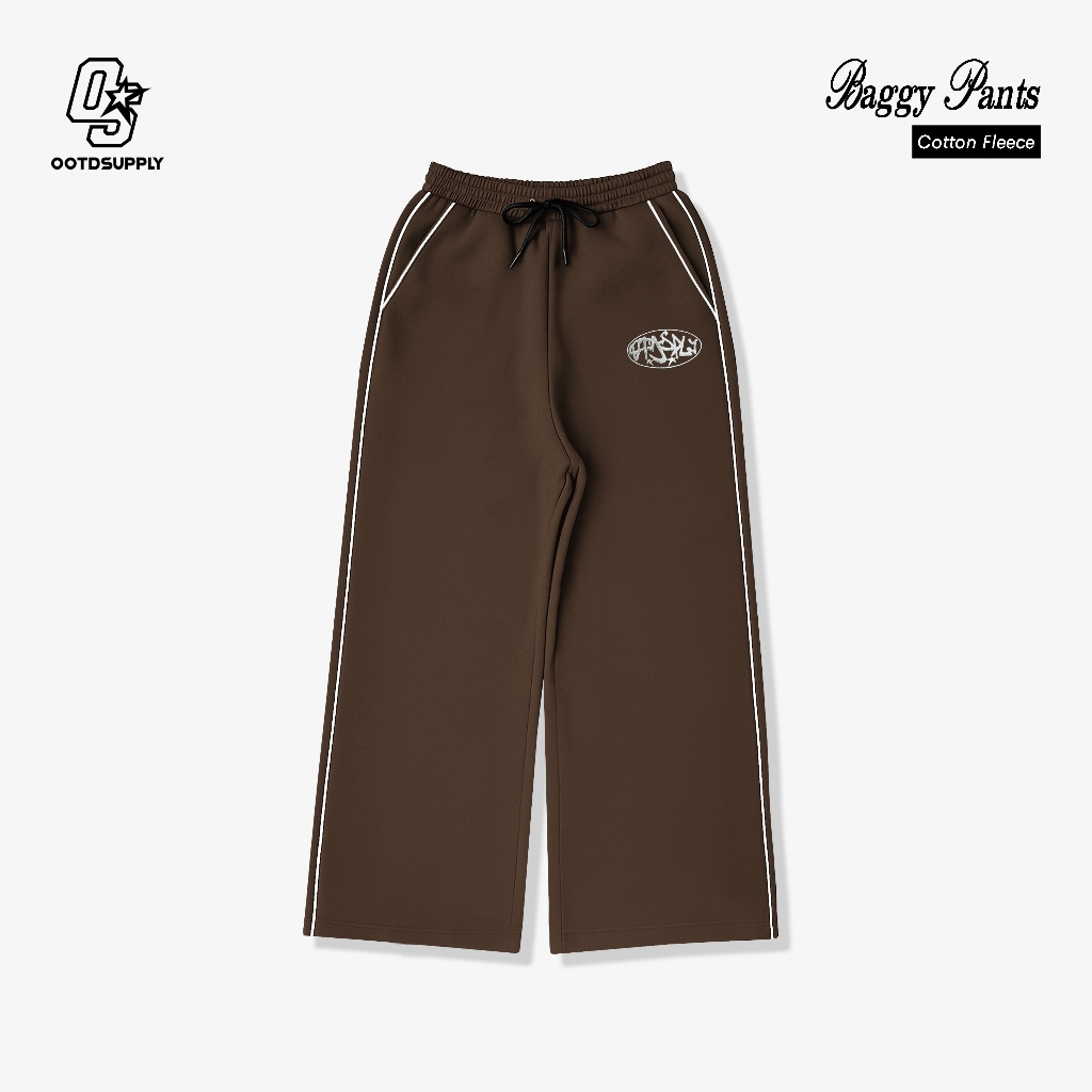 Ootdsupply Baggy Pants Line Circle Embroidery | Celana Panjang Unisex | Celana Sporty | Bp-Blk-Ce