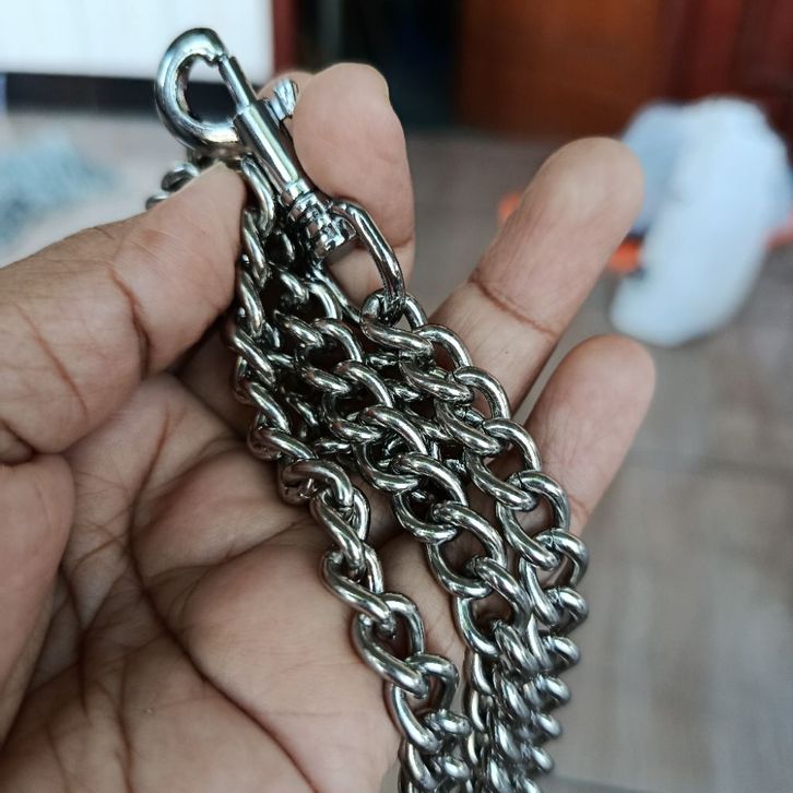 Tali Kekang Anjing medium rantai belenggu silver bahan besi kuat