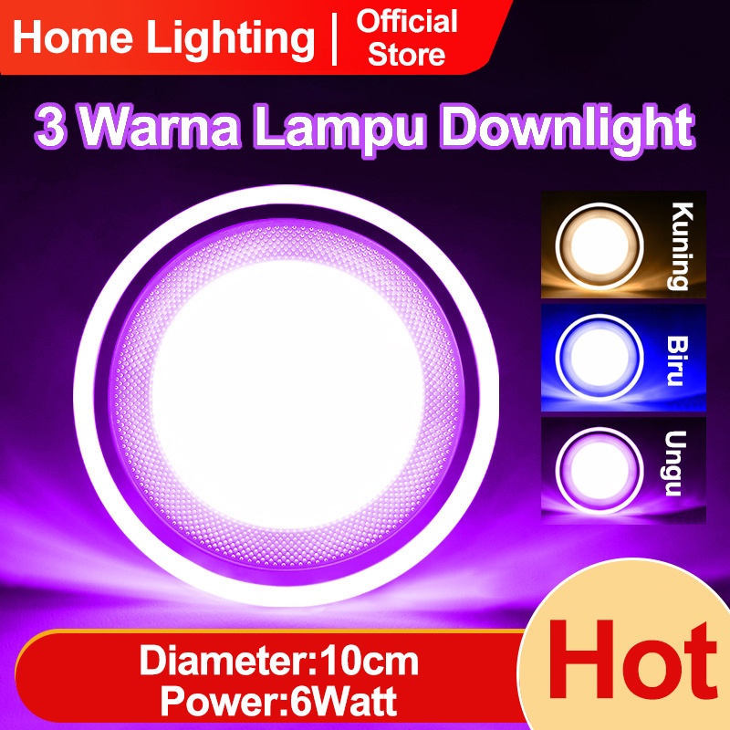 Home Lighting LAMPU DOWNLIGHT LED 3 WARNA 6WATT/ KUNING BIRU UNGU / PUTIH KUNING WARMWHITE /PANEL LED/LAMPU PLAFON LAMPU HIAS RUMAH