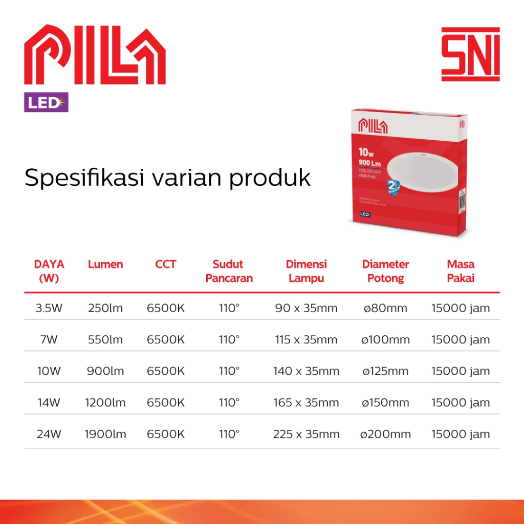 PILA Lampu Plafon LED Downlight 3,5 - 24 Watt 65K