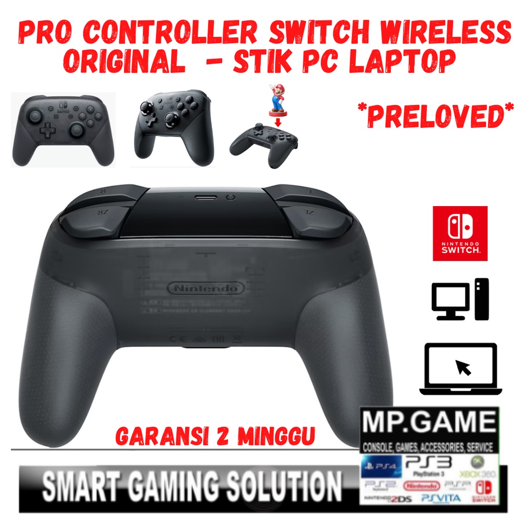 Pro Controller Switch Preloved Original Nintendo Wireless + Kabel 2,5M Type C Gamepad Joystick