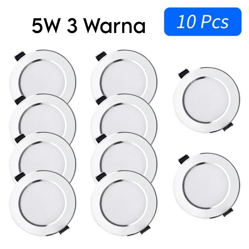 PAKET HEMAT LAMPU DOWNLIGHT 10 PCS 3 WARNA 5W 6W 7W PUTIH NATURAL KUNING INBOW 220V