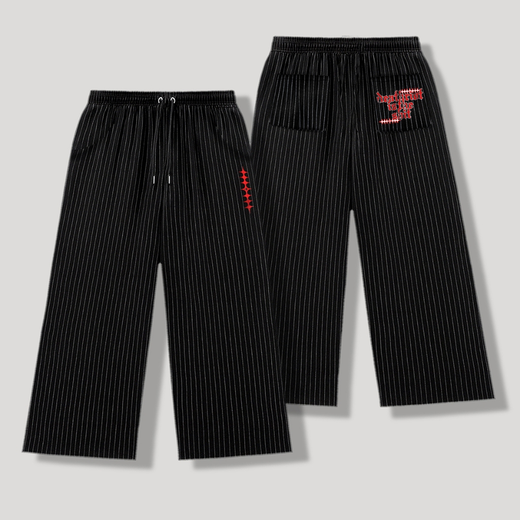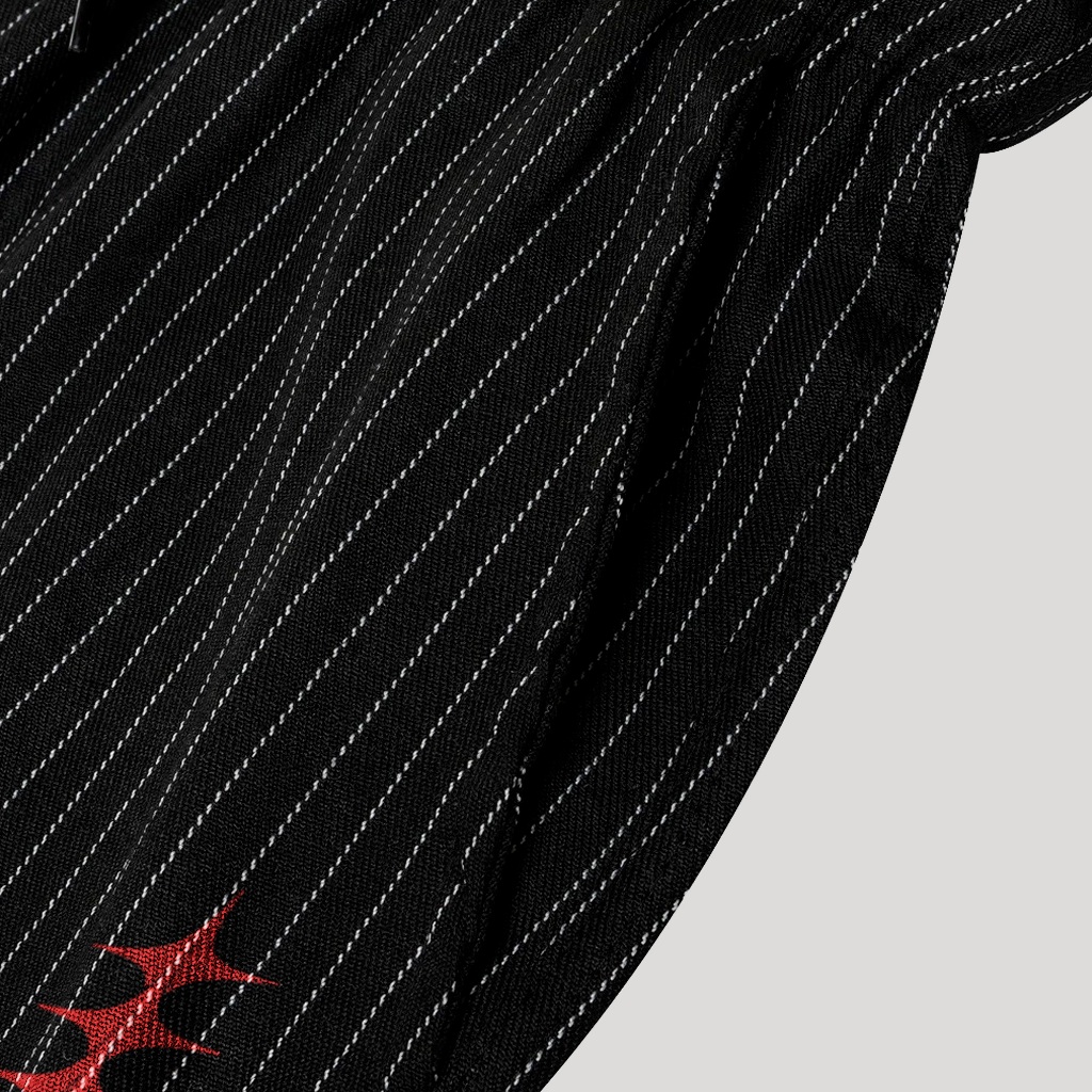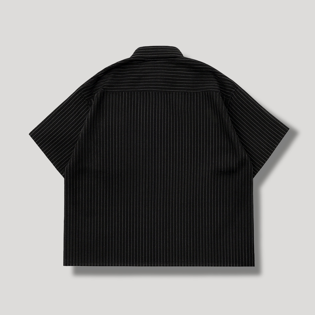DTRT - One Set Workshirt Boxy Double Zipper Baggy Pants Stripe Salur Garis-garis hitam - Free Gift