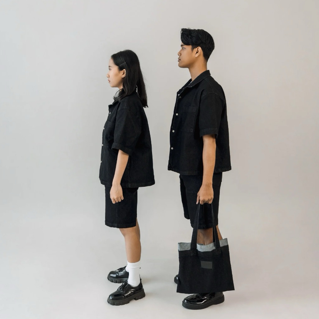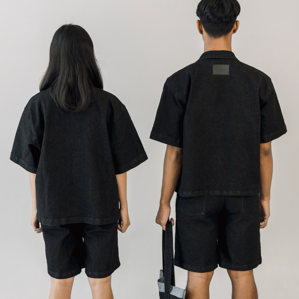 Personalism - Denim Boxy Oversized Shirt and Short Pants Black Uni
