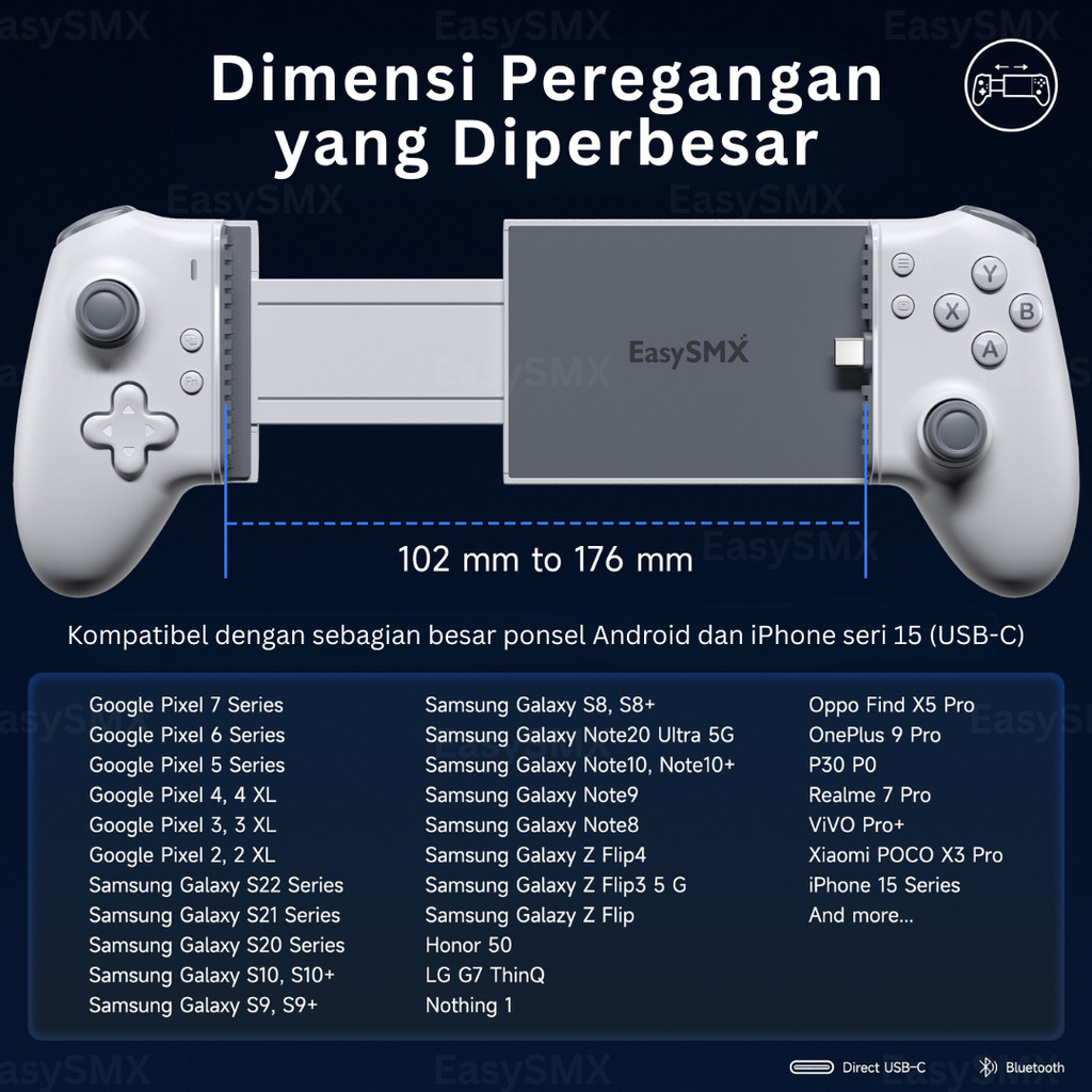 Easysmx M15 [Garansi 1 Tahun] Gamepad Mobile Gaming Controller Android Ios Type-C & Bluetooth