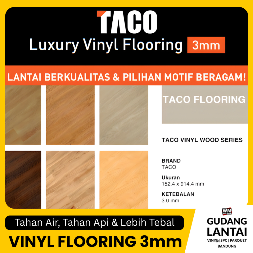 TACO Lantai Vinyl 3mm | Vinyl TACO 3mm Motif Kayu | Per 1 Box (Isi 3,34 M²)