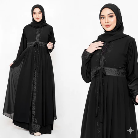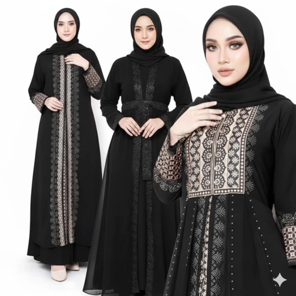 Gamis Abaya Lebaran 2026 Dress Busui Friendly Pesta Hitam Mix Ceruty Mewah Elegan Model Terbaru Haji