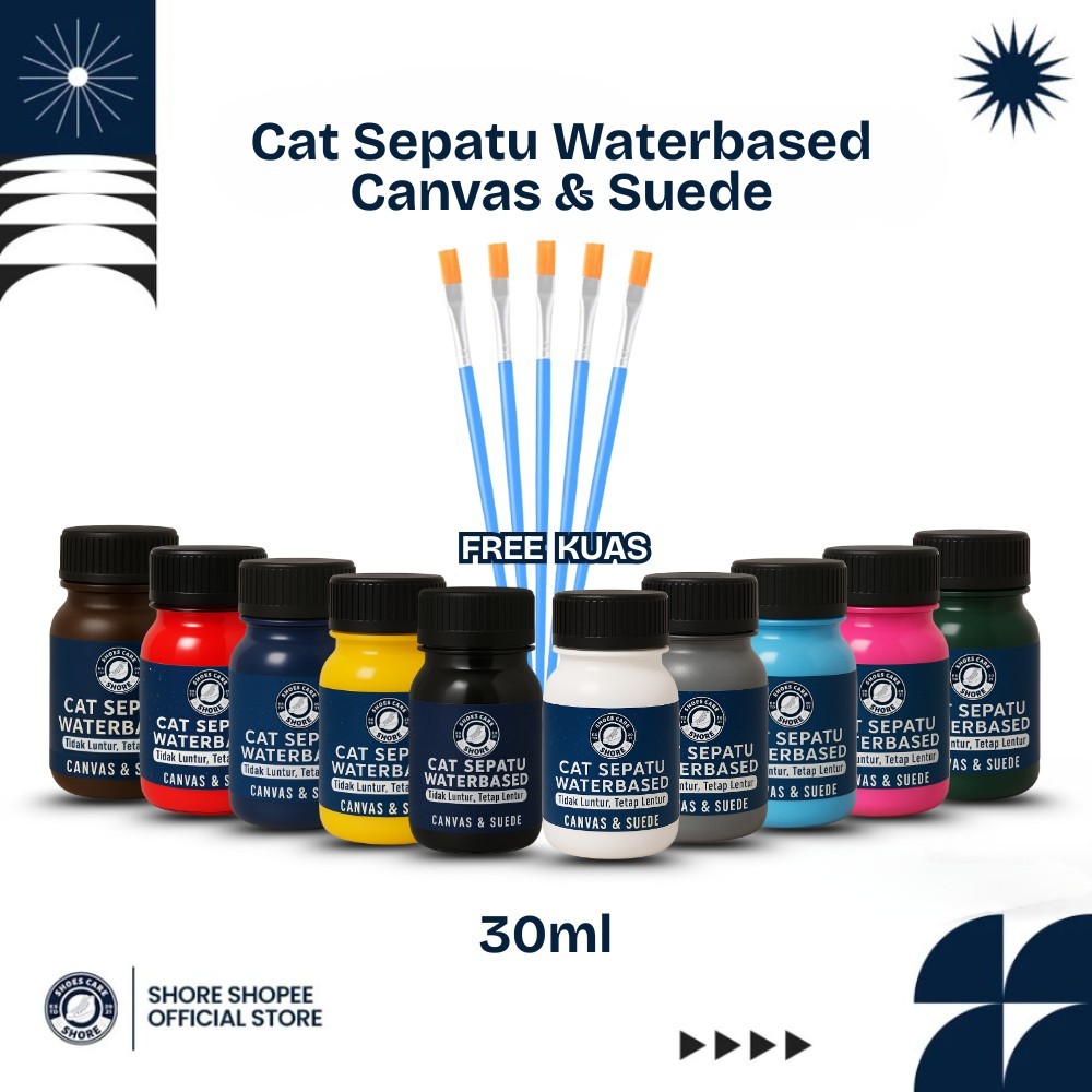 SHORE - Cat Sepatu Waterbased Canvas & Suede - Tidak Luntur, Tetap Lentur - 30ml