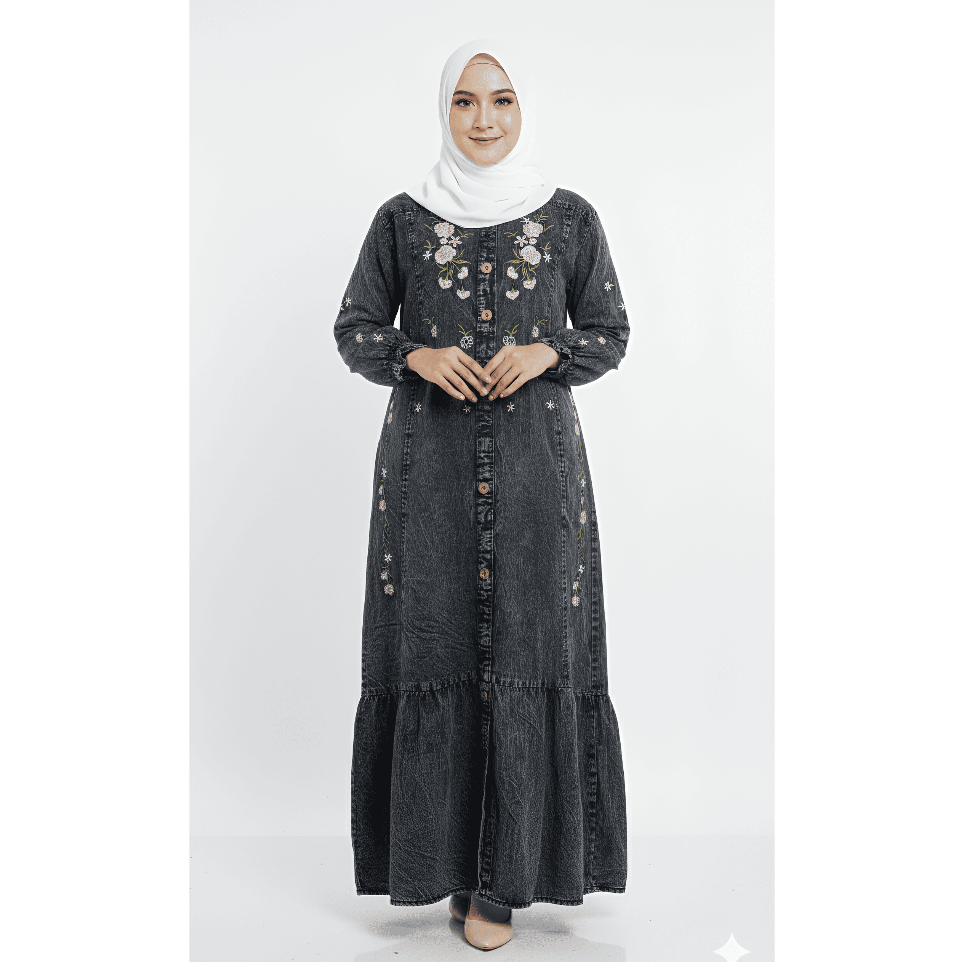 Baju Gamis Dewasa Jeans Denim Wanita Terbaru Maxi Dress Gamis Bordir Jeans Premium 2026