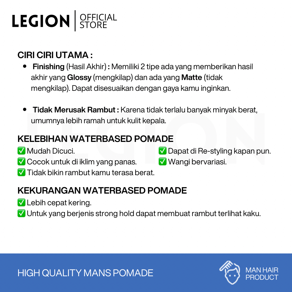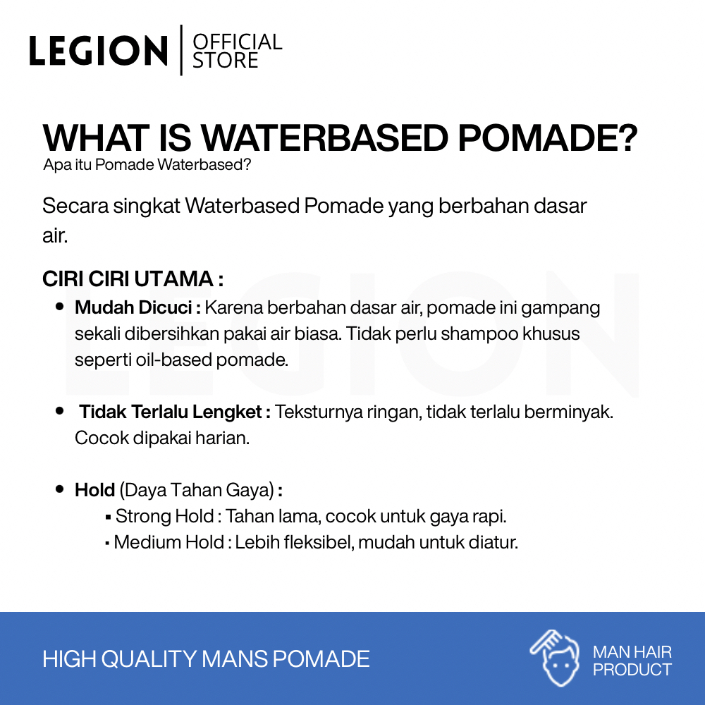 Legion Pomade Waterbased 150gr XL-Hold Aroma Segar