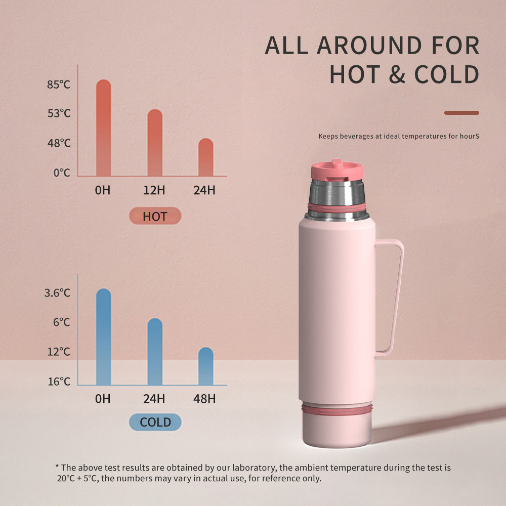 Dearday Sharing Mugs Tumbler Portable 304 Stainless 1200 Ml Thermos Cup Vacuum Insulated Camping Outdoor Grey