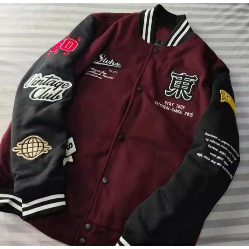 Varsity Basebal JAKET model Kancing bordir PRIA dan Wanita Premium Fullmoon cewek cowok Original tag Tebal 2024