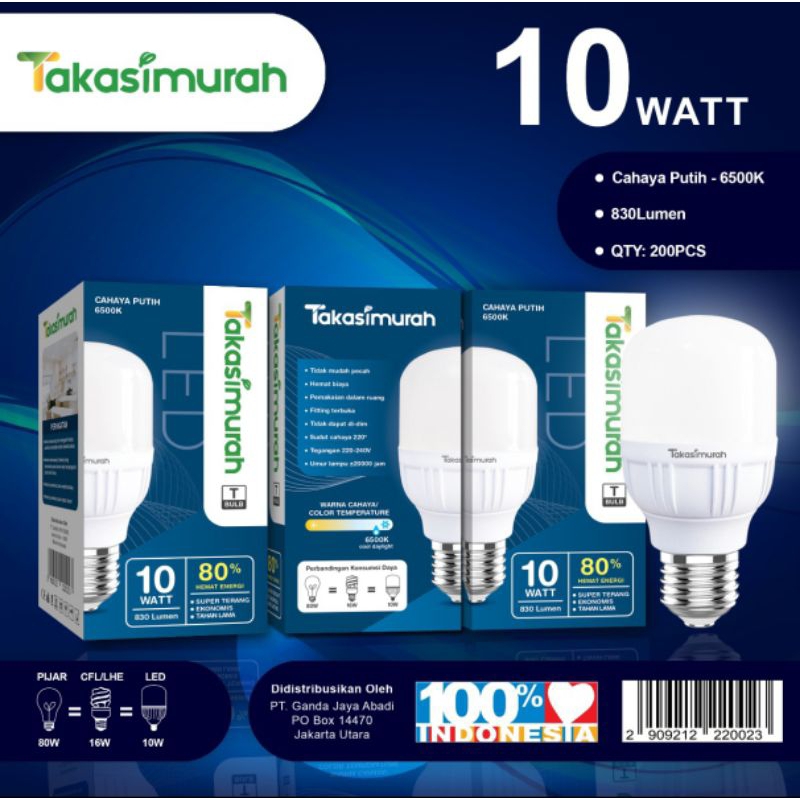 TAKASIMURAH LAMPU LED 5W 10W 15W 20W 30W 40W 50W PUTIH SNI BOLAM BOHLAM BERGARANSI BAGUS BERKUALITAS LAMPU LED TERLARIS