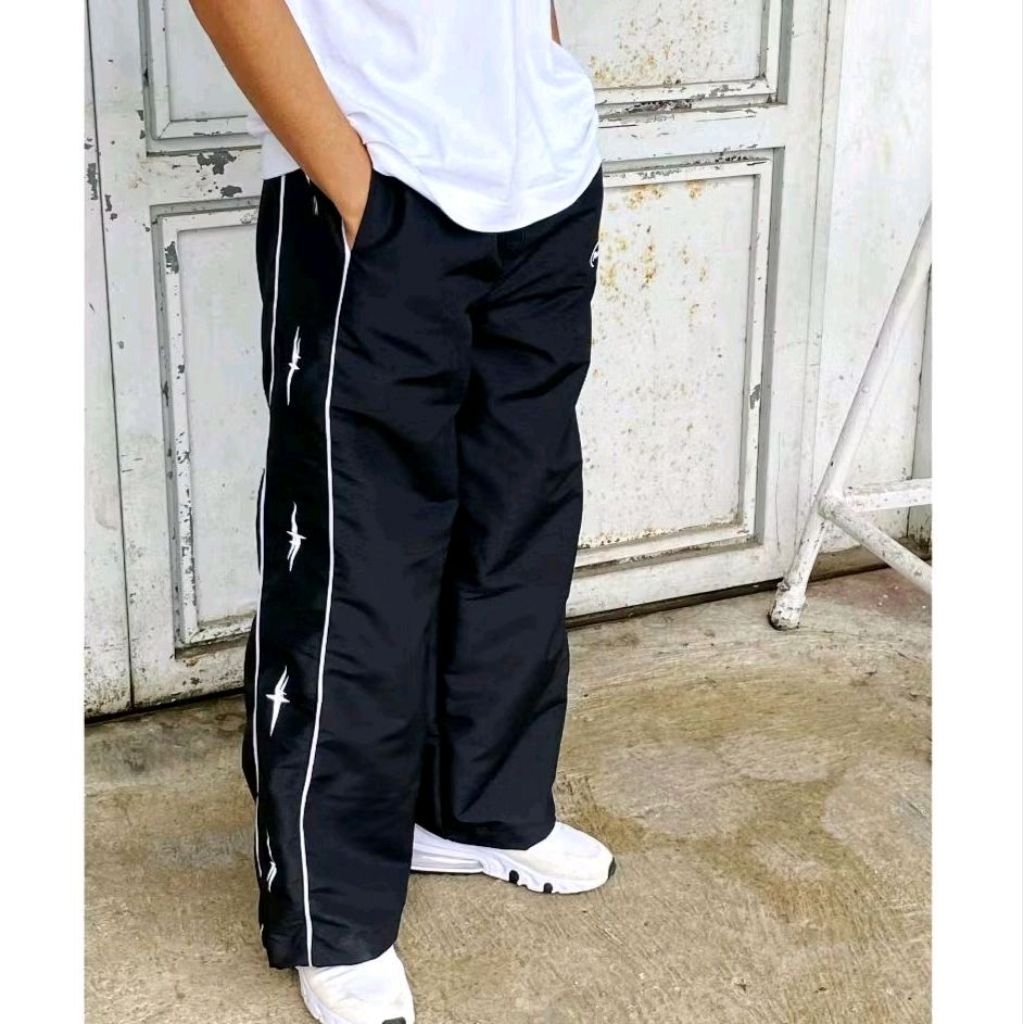 Baggy Pants Parasut Y2K List Putih & Reflektif Starz Menyala
