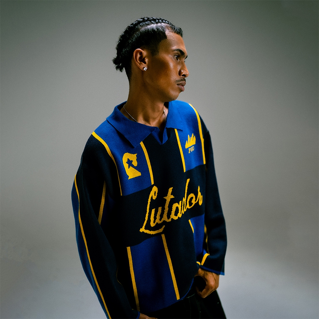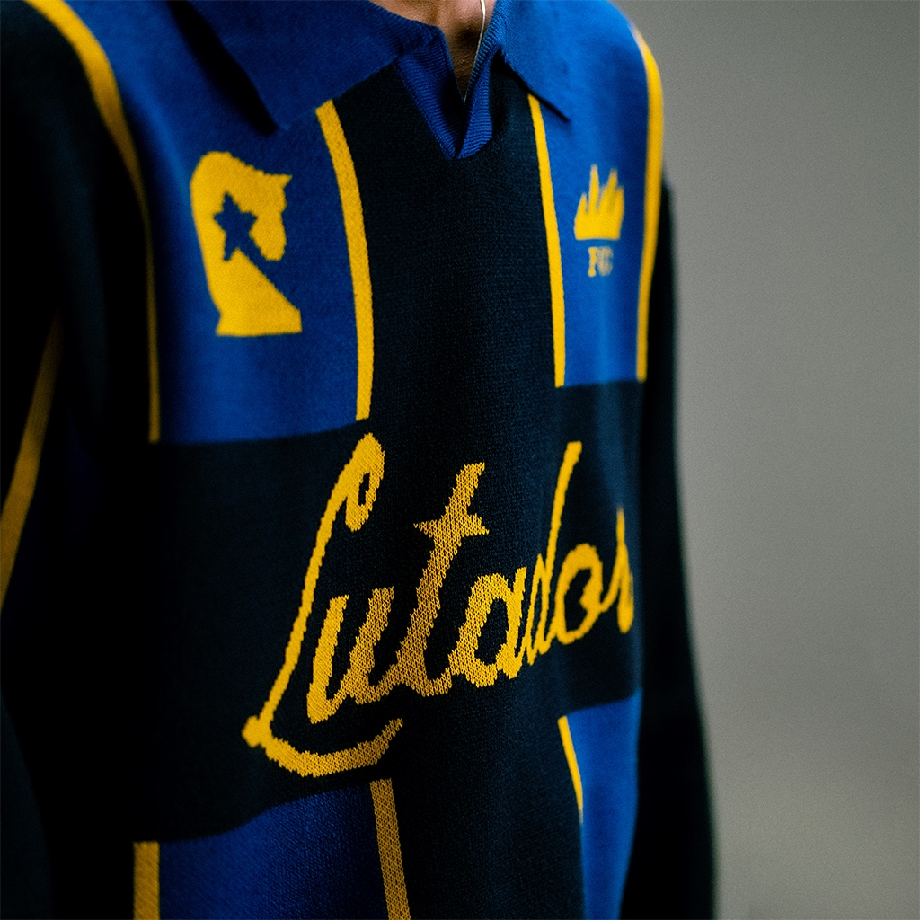 Figco - Knitted Jersey Long Sleeve Boxy Polo Knit Lutador Blue