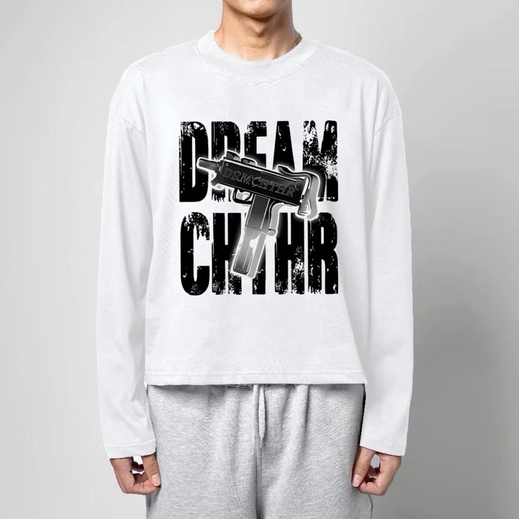 Baju Kaos Boxy LOONGSLEEVE DREAM CHTHR Pria Wanita Oversize Lengan Panjang Hitam Putih