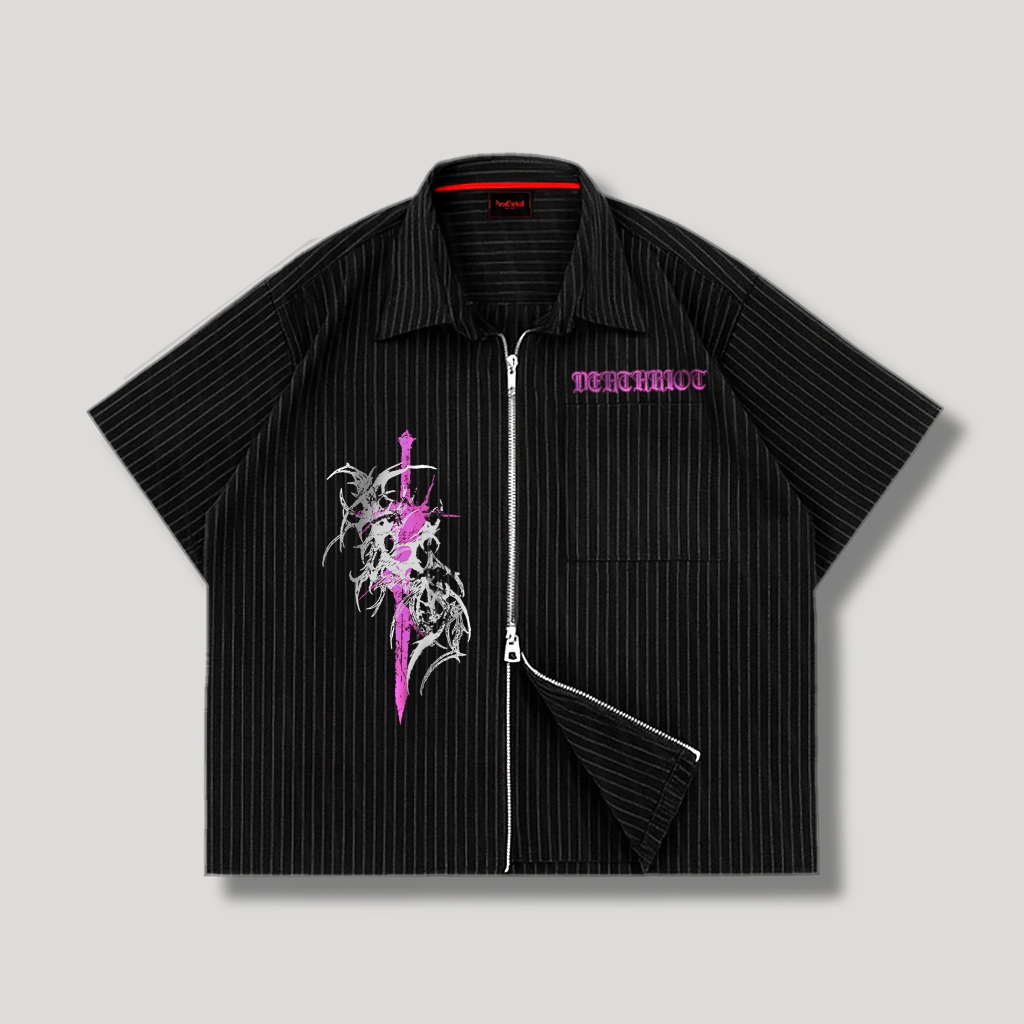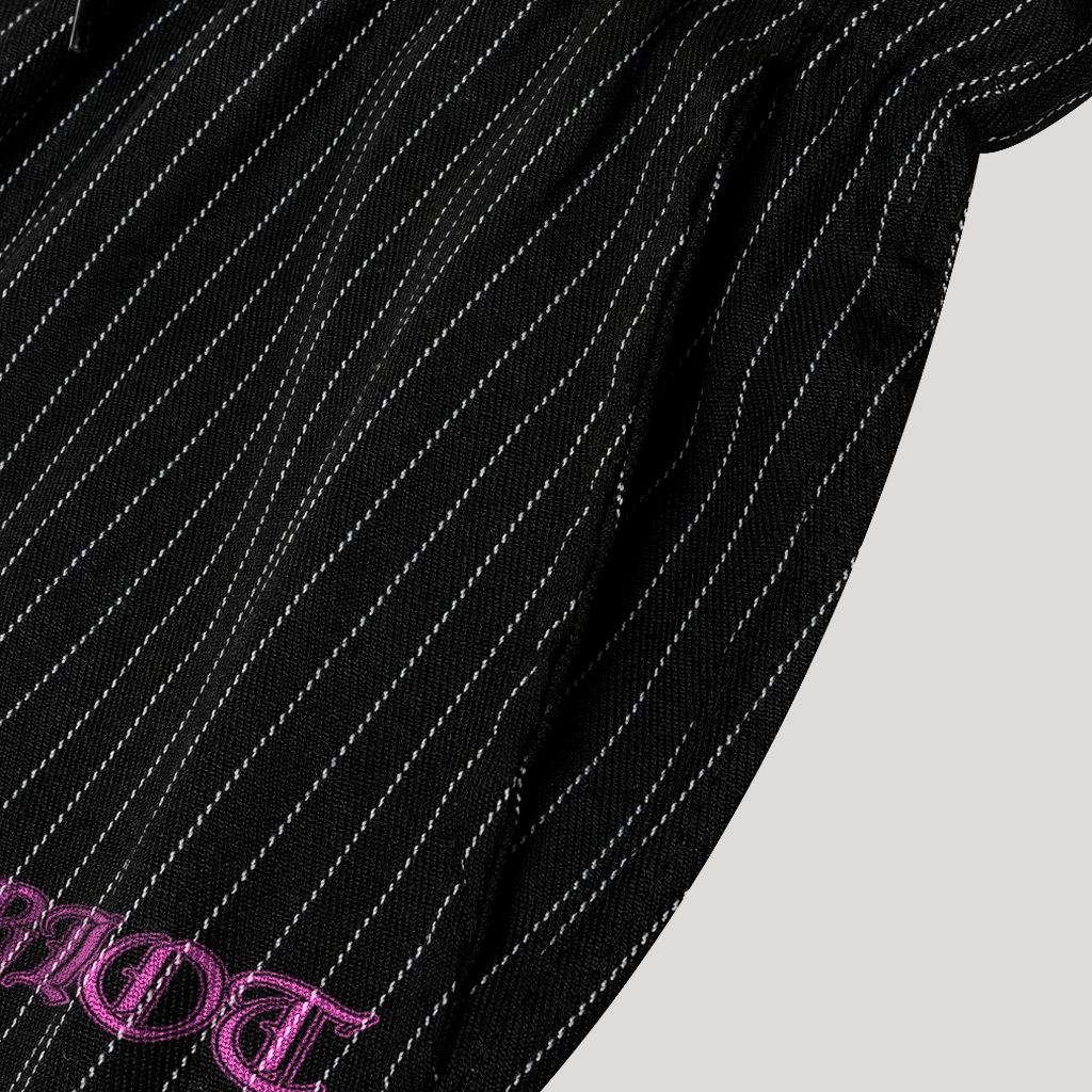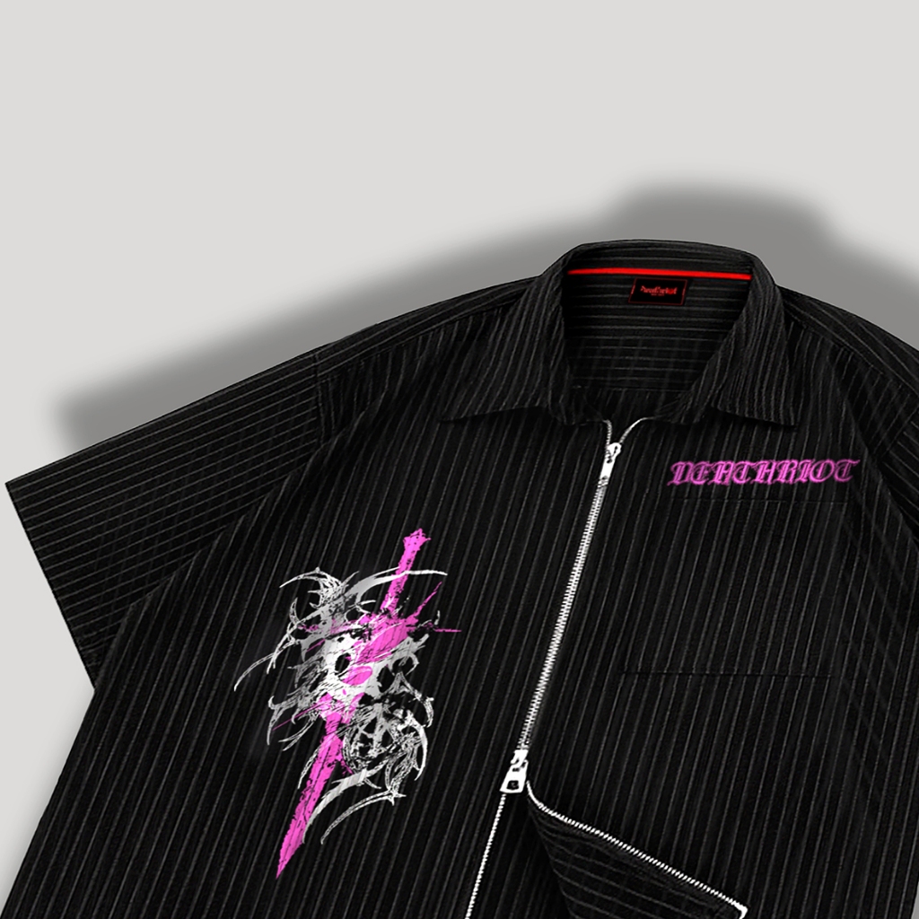 DTRT - One Set Workshirt Boxy Double Zipper Baggy Pants Stripe Salur Garis-garis hitam - Free Gift