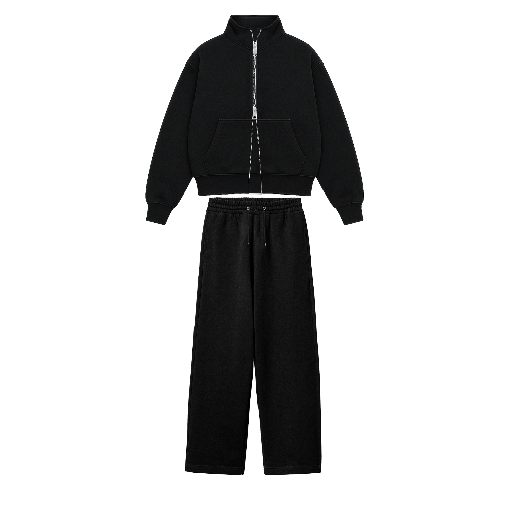 Caelux - One Set Tracktop Boxy Double Zipper + Sweatpants Baggy with Basic Fleece