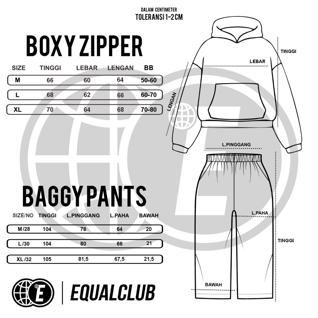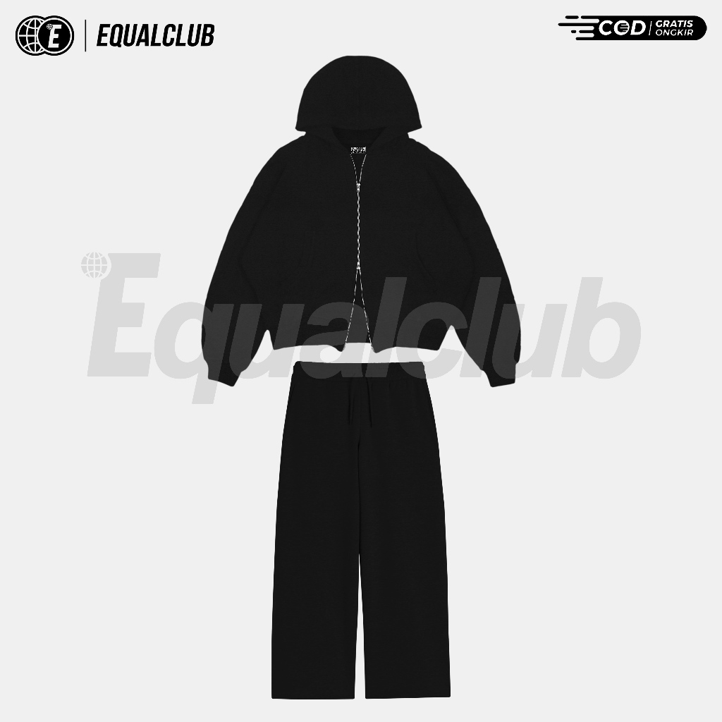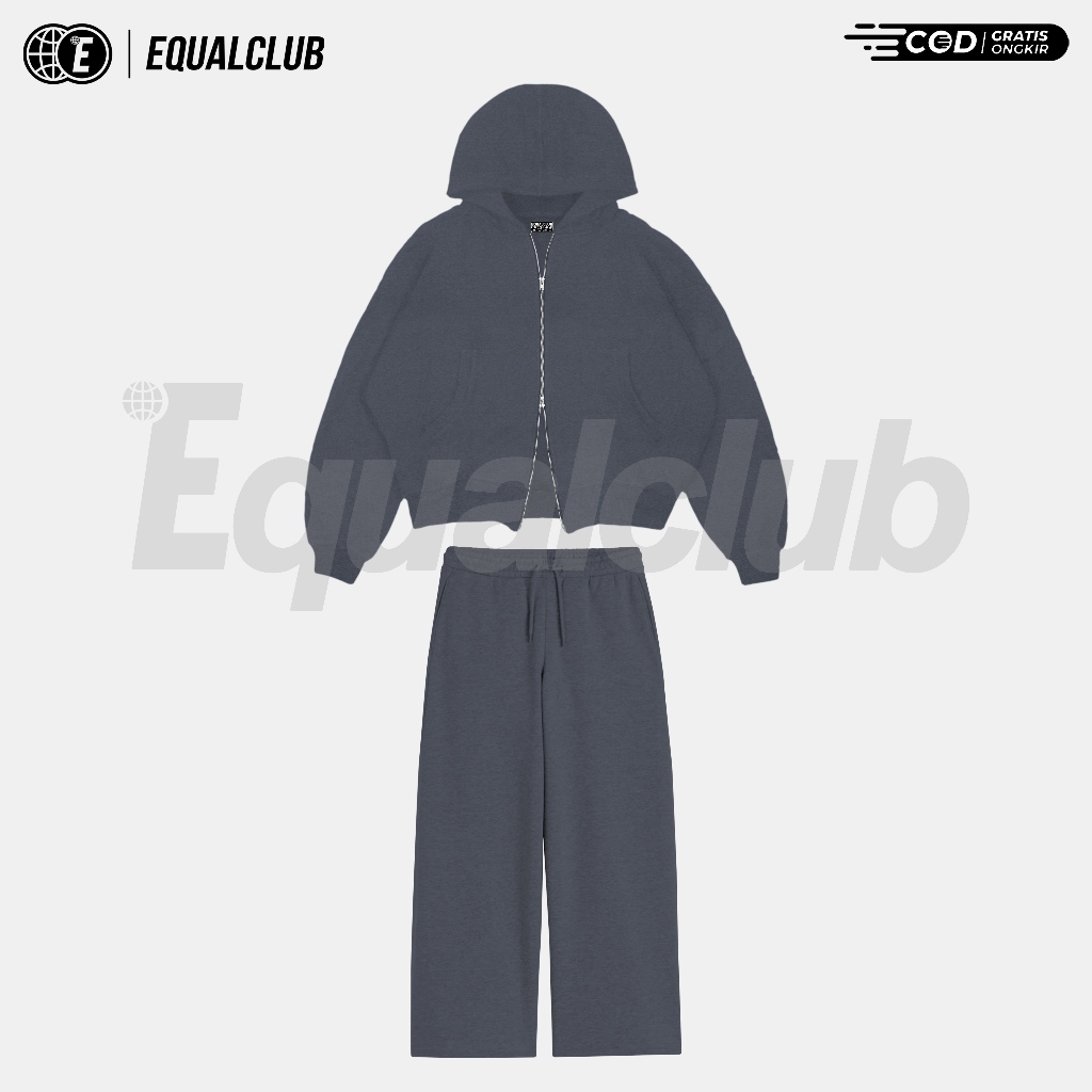 Equalclub - One Set double zipper hoodie boxy + baggy sweatpanst basic fleece uni 280 gsm M L XL