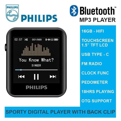 Bluetooth Mp3 Player 16Gb Hifi Sporty Pedometer With Back Clip - Philips Sa6116