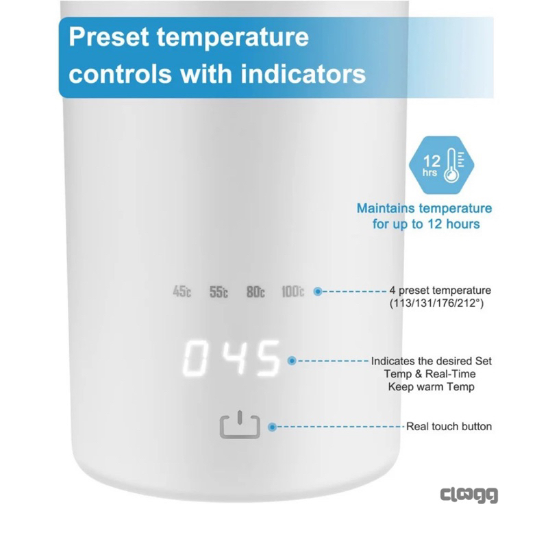 Cloogg Kettle Portable Stainless Steel By-K16 - 450Ml - Termos Digital Dengan Kontrol Suhu & Tahan Bocor Untuk Perjalana