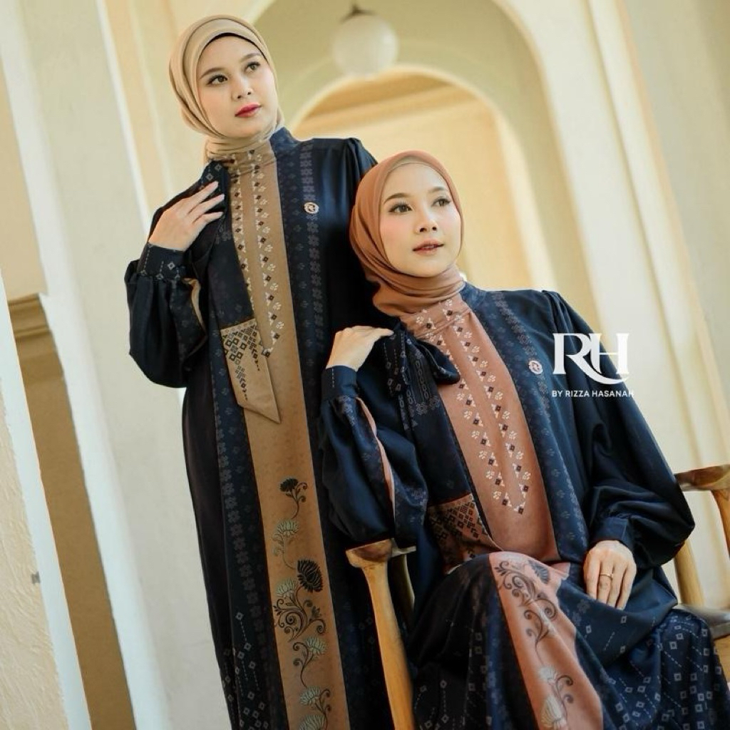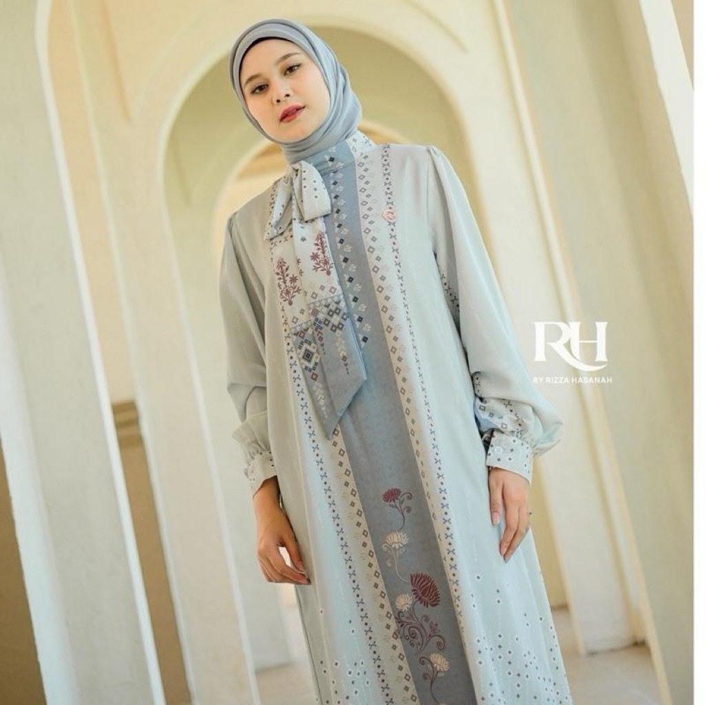 Rh Col Khalisa Dress Raya Series 2026 Bahan Silk Motif Gamis Wanita Muslim Elegan Simple
