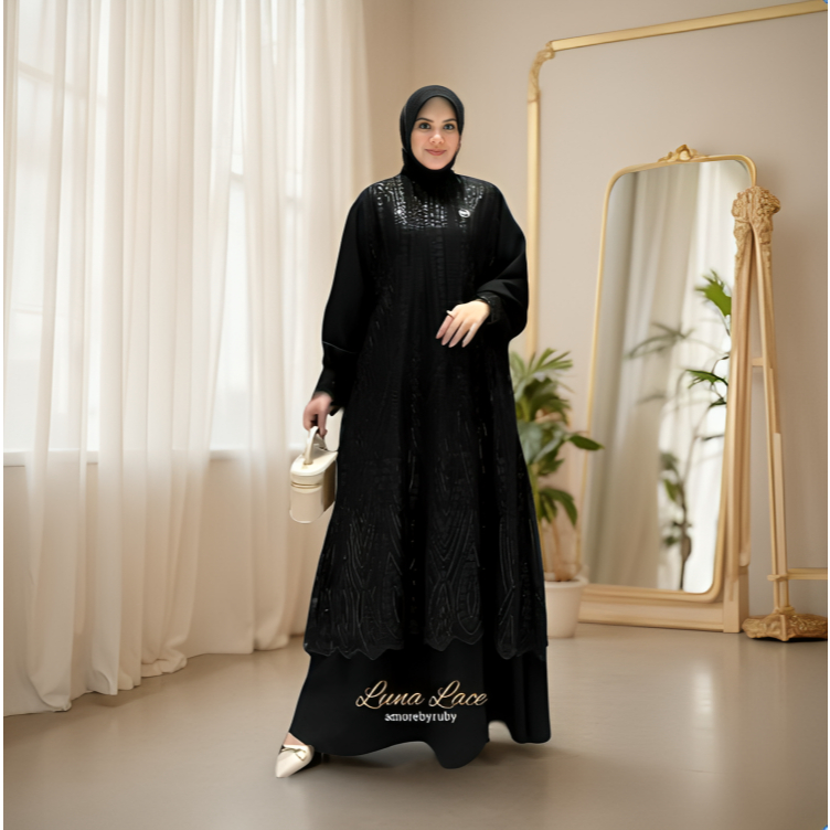 Luna Lace Brukat Silk Gamis Pesta Kondangan Wanita Populer 2026 Size Kecil Jumbo M-L-Xl-Xxl-3L-4L5L