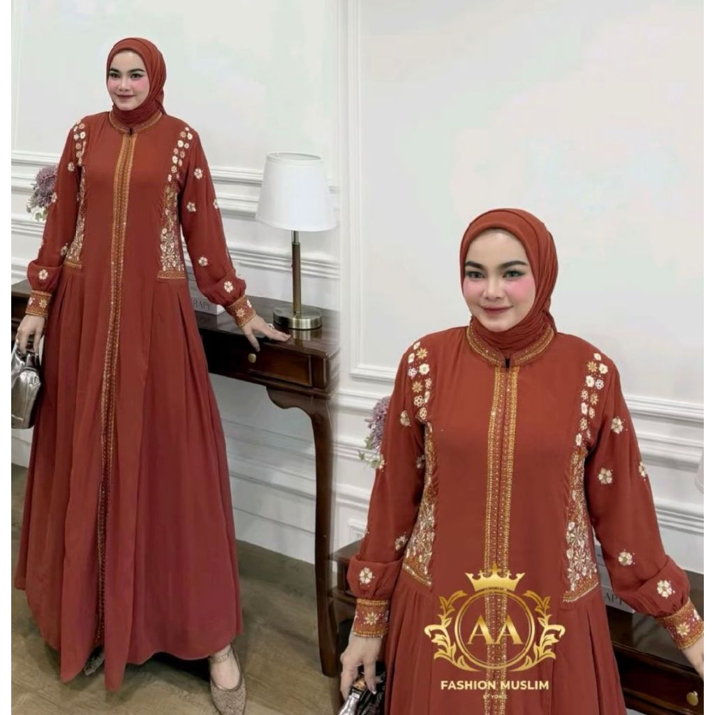 Gamis Hikmat Fashion Muslim Modern Pakaian Wanita Kekinian Baju Wanita Terbaru 2026 Bordir Plus Hija
