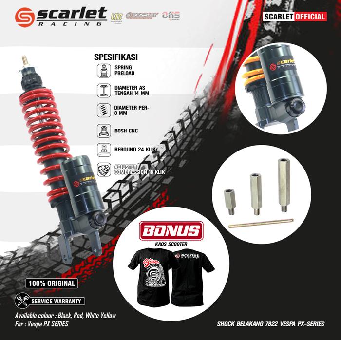 Scarlet Racing - Shock Absorber Shockbreaker Tabung Double Adjuster Skok Belakang Vespa Classic