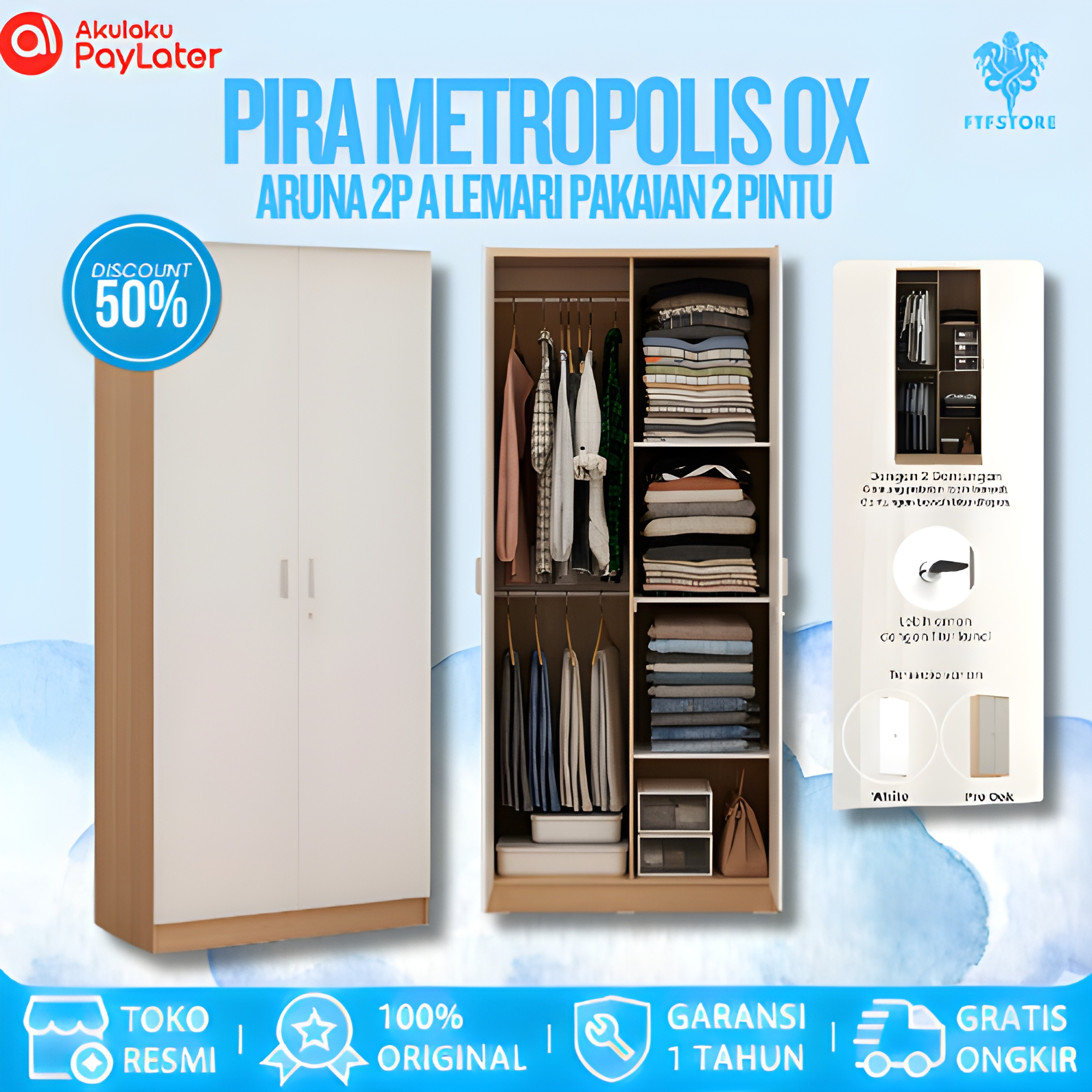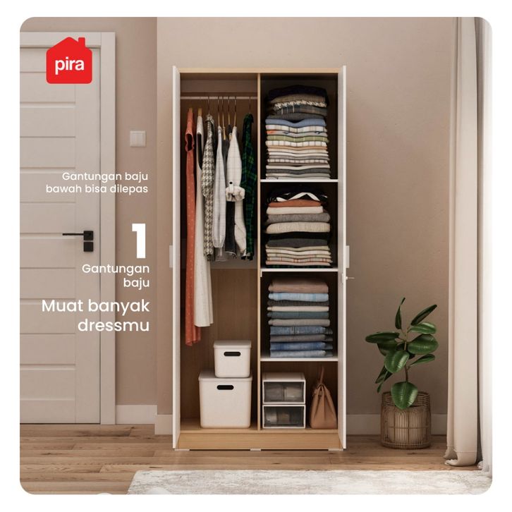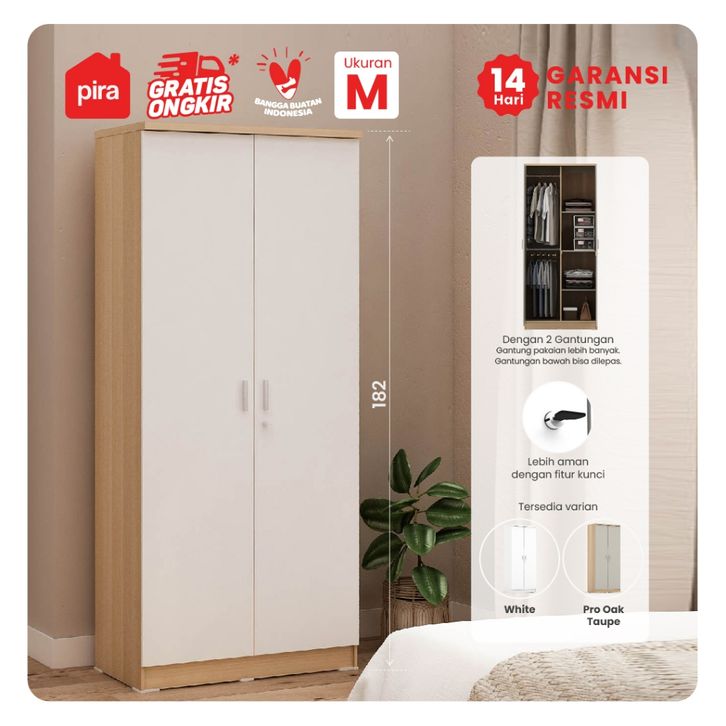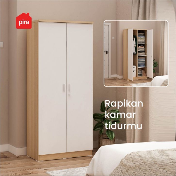 Lemari Pakaian Pira Metropolis OX - Aruna 2P A Kayu Sliding Besi 2 Pintu Jumbo Murah Gratis Ongkir