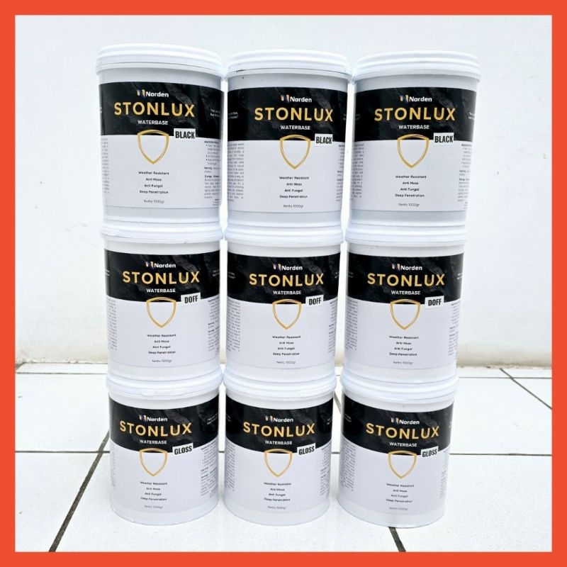 STONLUX Vernis Batu Alam 1Kg Waterbase Gloss Doff Black Stone Coating Glossy Matt Candi bukan scorpio glotex stone care coat no lumut vba golden horse protexone stonkote am80 pernis cat andesit