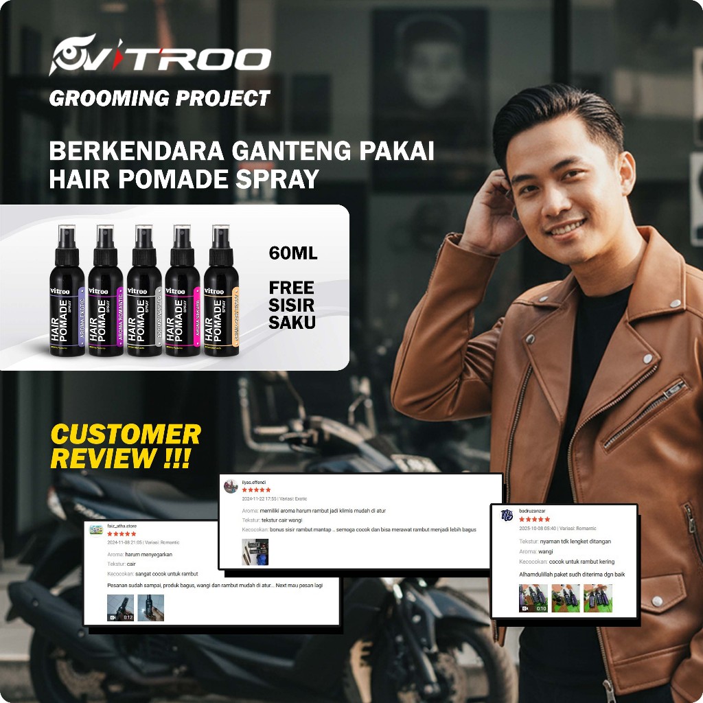 Vitroo Hair Pomade Spray Pomed Rambut Semprot Waterbase Minyak Rambut Pria Hair Styling Natural FREE Sisir Saku