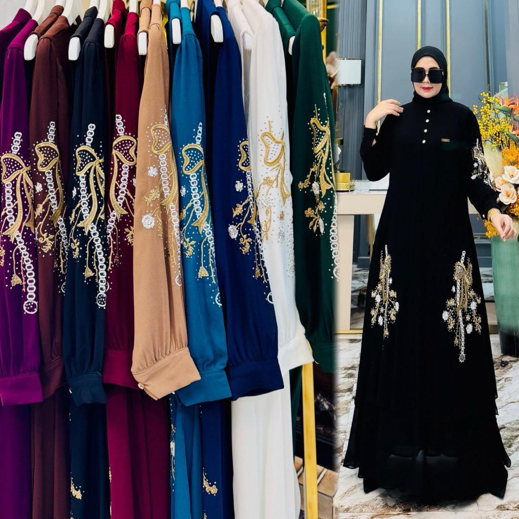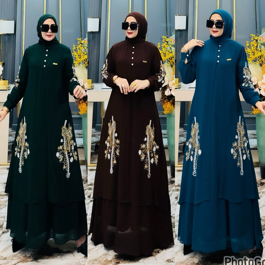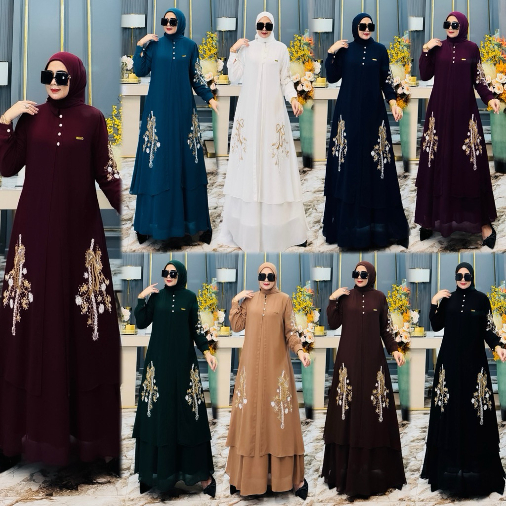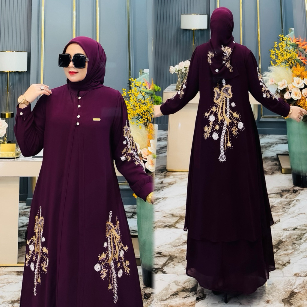 Gamis Lebaran2026 Amirah Dres Bordir 3In1 Set Outer Free Hijab Gamis Lebaran Terbaru 2026 Gamis Mewah By Baahirahannafi