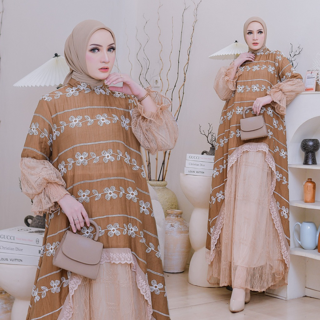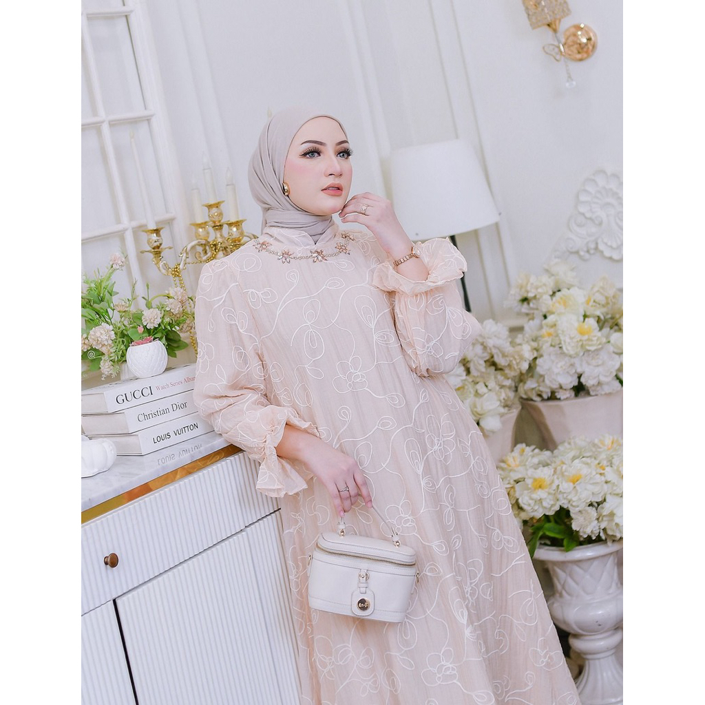 Dress Ceruty Tulle Katun Bordir Lebaran Muslim Wanita By Ratu Aisyah| Dress | Terbaru Edisi Lebaran 2026