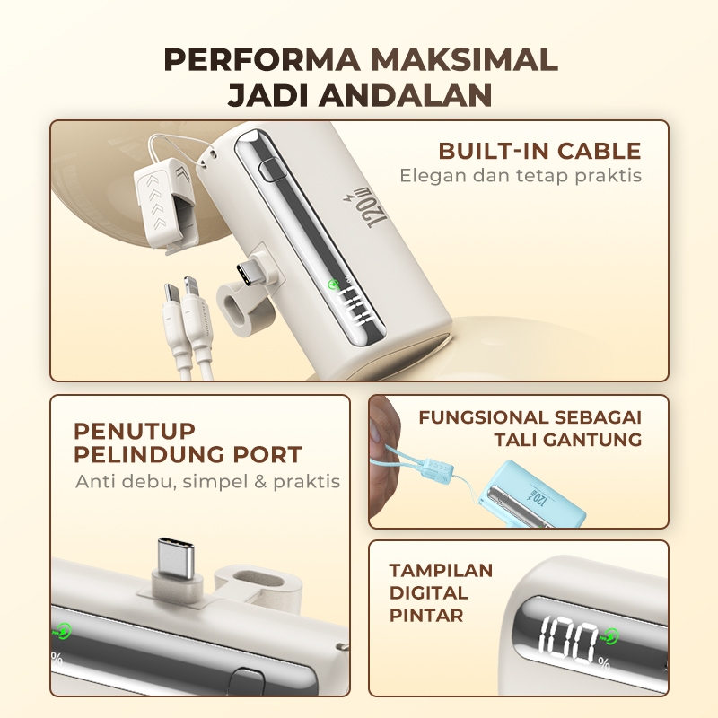 Skcbo Fast Charging 120W Mini Powerbank 10000Mah Led Display 2-In-1 Cable Type-C/Iphone & Android With Stand Holder - Po