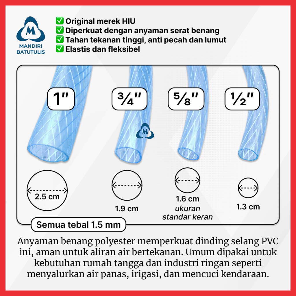 Selang Benang Serat Transparan Slang Air Taman 5/8" inch HIU