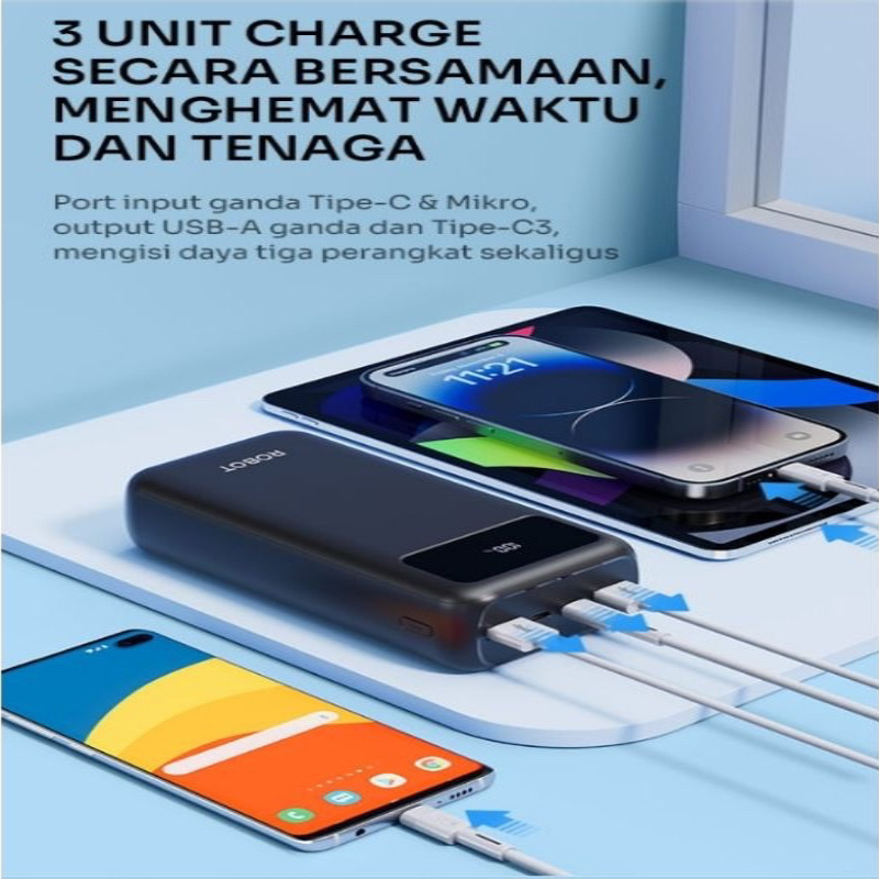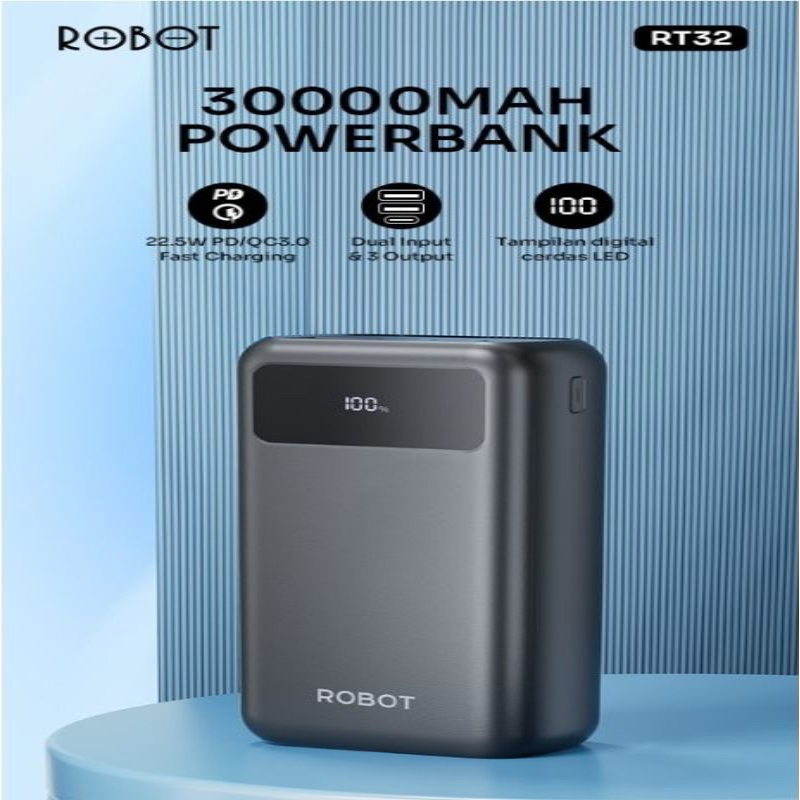 Robot Power Bank Rt32 30000Mah Powerbank 3Output & 2Input 22,5W Quick Charge Pd Qc3.0 Garansi Original Resmi