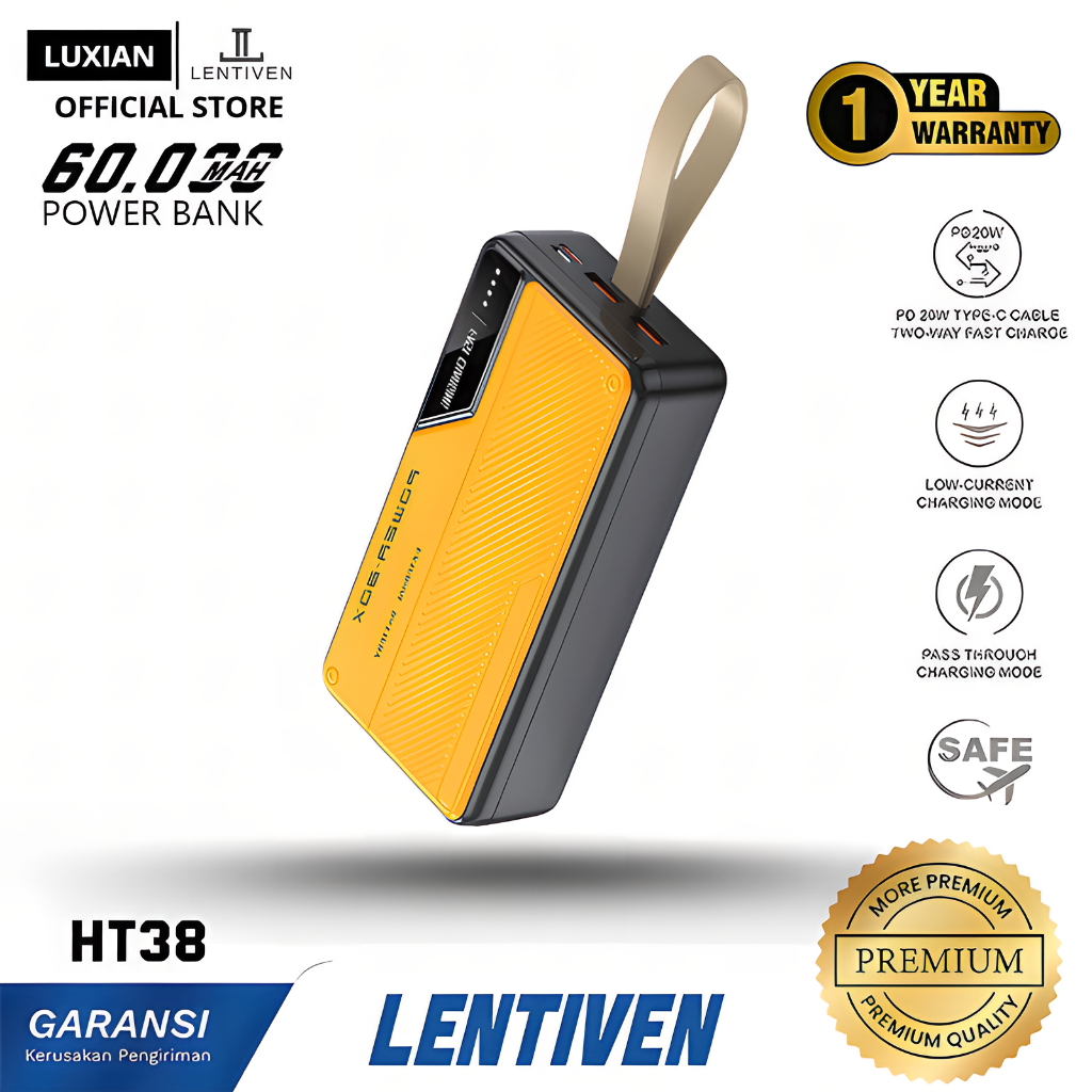 Luxian Lentiven Powerbank 60000Mah Dual Output Input Micro Type C Fast Charging Led Display Ht38