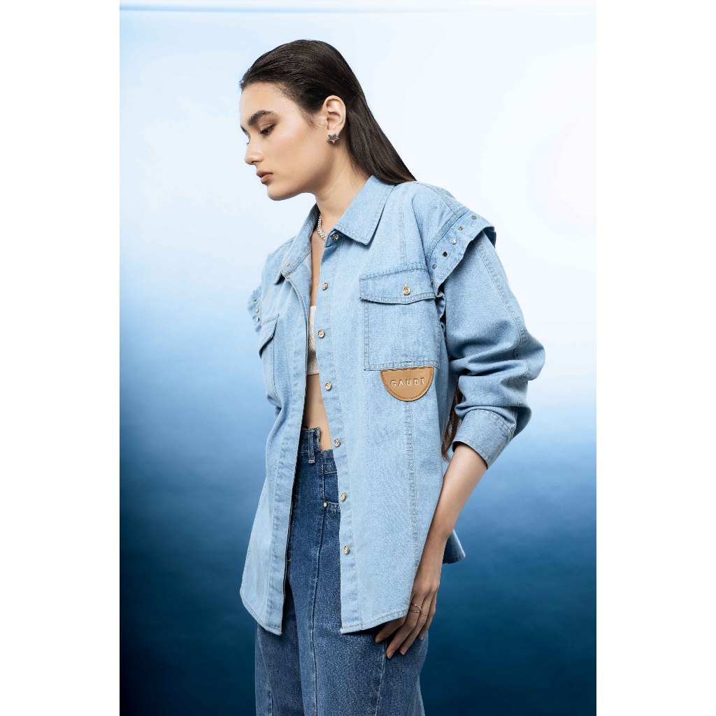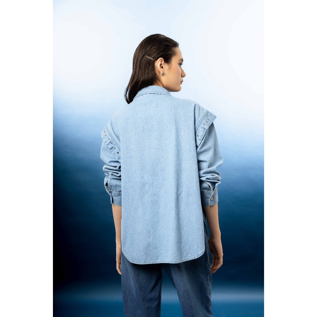 Erika Style Bleu Gaudi Ltd. Kemeja Oversized Lengan Panjang Casual Wanita Sam Shirt