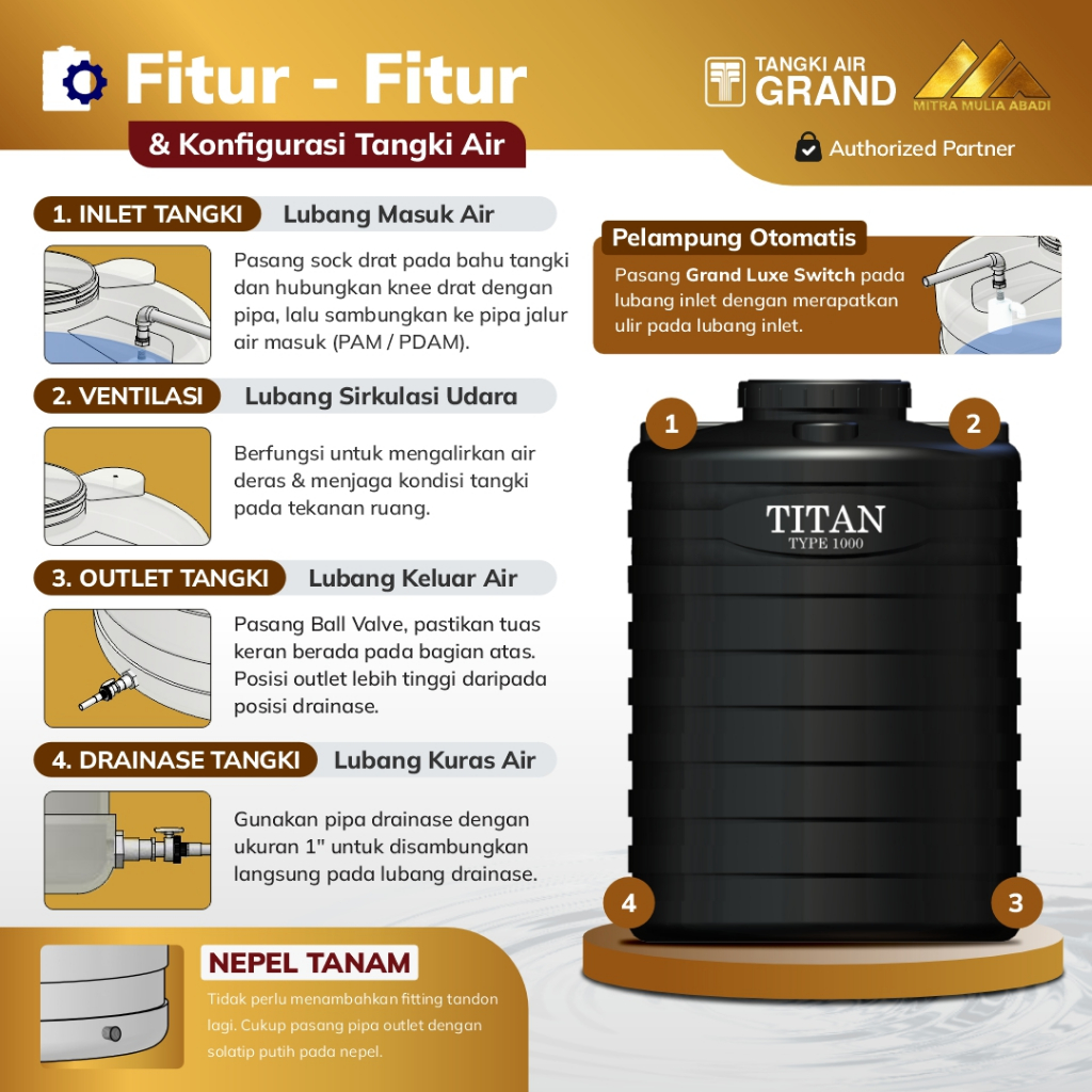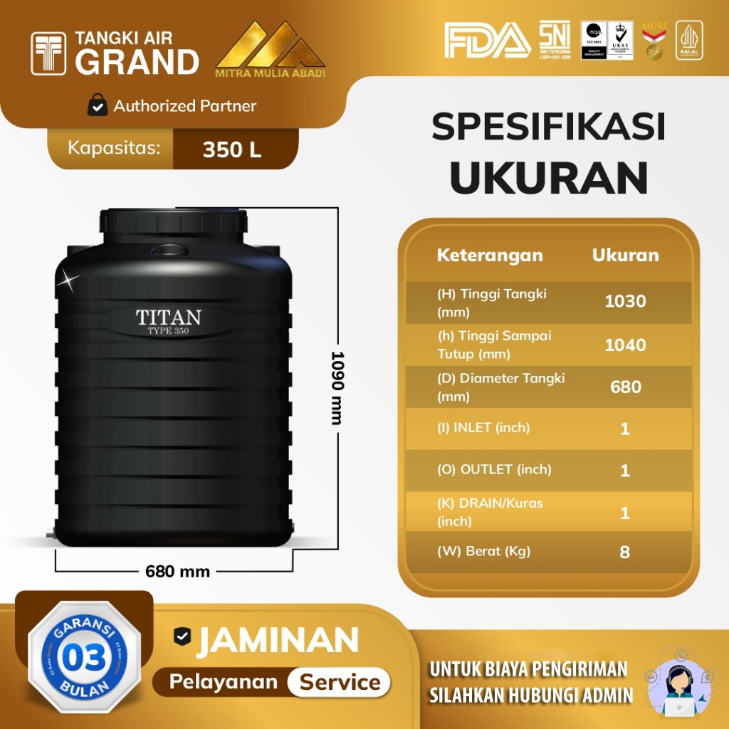 (KHUSUS BANDUNG-BACA DESKIRPSI) Tandon Toren Tangki Air Titan 350 L Anti Lumut & Sertifikasi Halal Garansi 3 BULAN