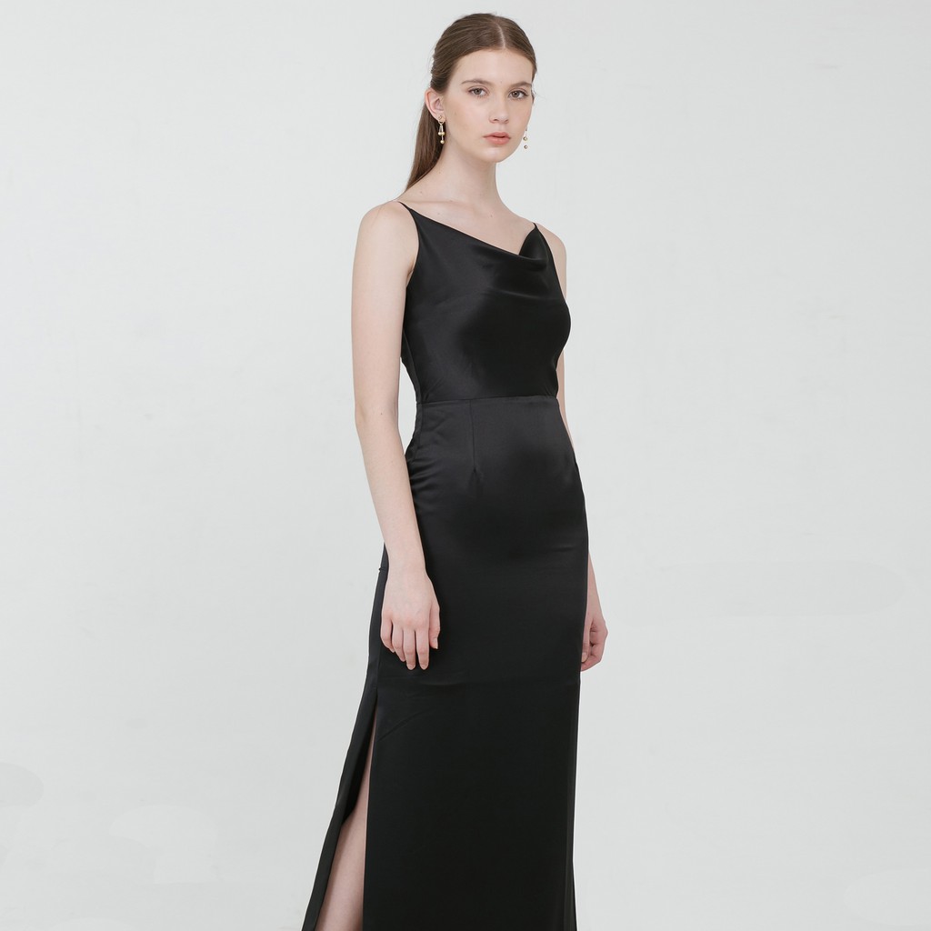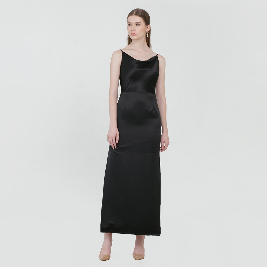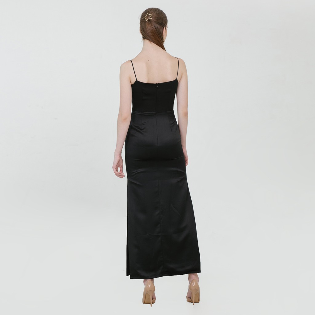 Cloth Inc Drapery Maxi Slit Dress | Dress Panjang Satin Sateen | Dress Bridesmaid Kondangan Pesta