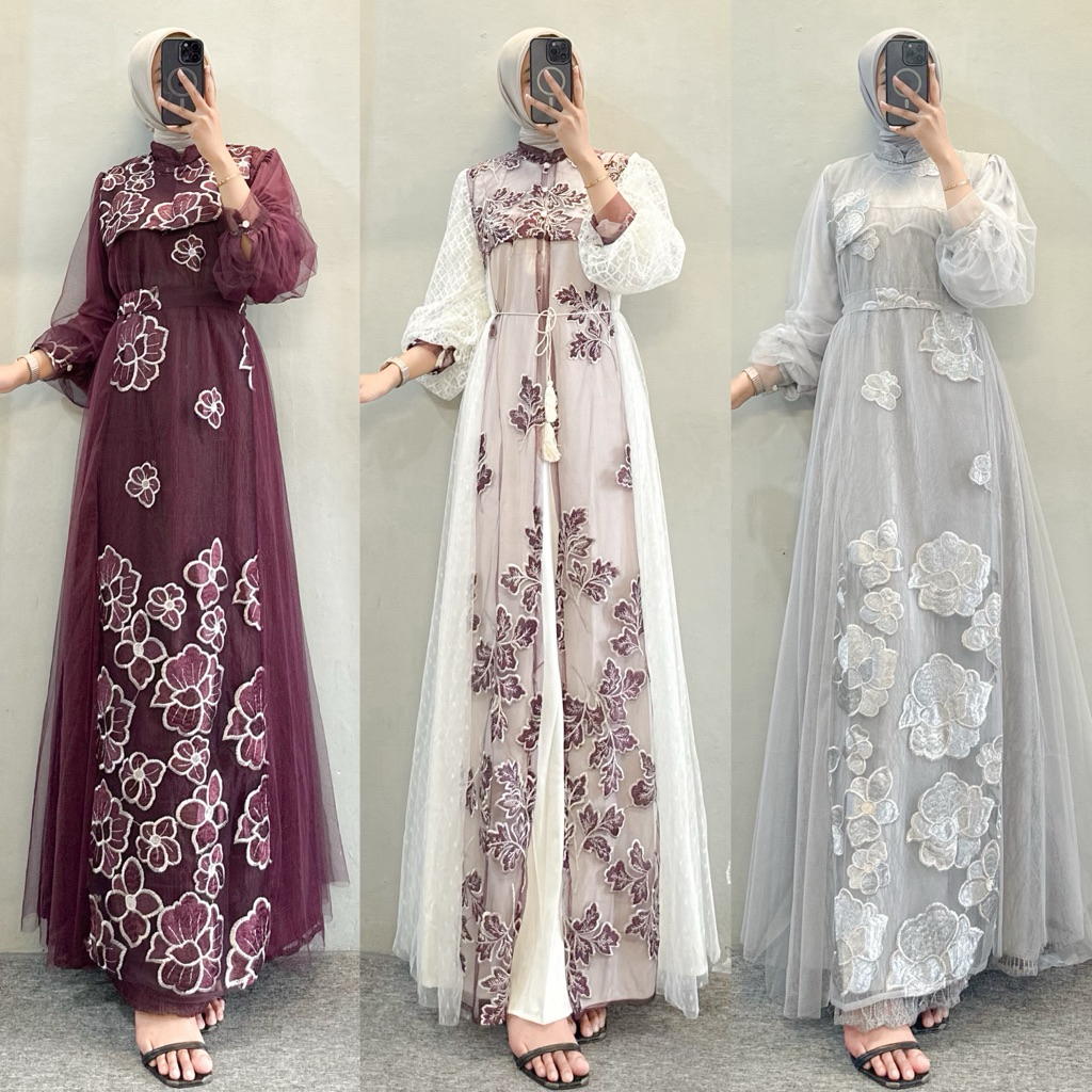 Elena - Raline Dress Brukat Premium Kondangan Lebaran Wanita Kekinian | Dress Brokat Outer Lepas Pasang Free Tali Dress