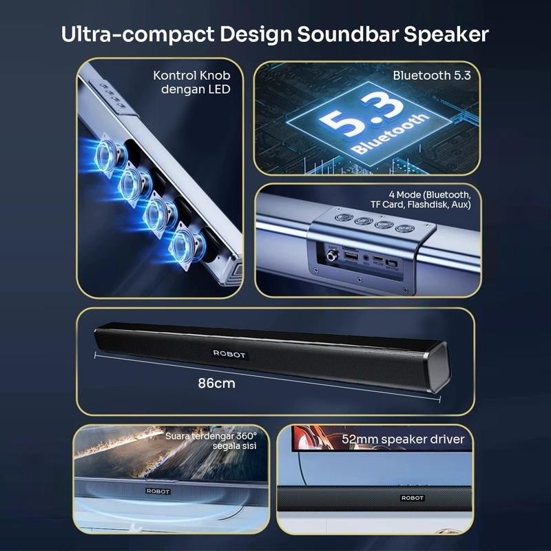 Robot Speaker Soundbar Tv Home Theater Suara Dahsyat Panjang 86Cm Dual Connection Bluetooth Versi 5.3 Dengan 4 Mode Pemu