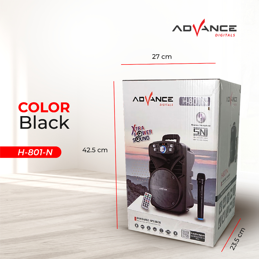 Advance Speaker Bluetooth Portable H-801N 8 Inch Free Microphone Wireless Garansi Resmi 1 Tahun