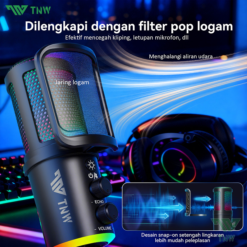Tnw K20 Wireless Microphone Condenser Usb Type-C Mikrofon With Rgb Light Untuk Pc Streaming&Gaming