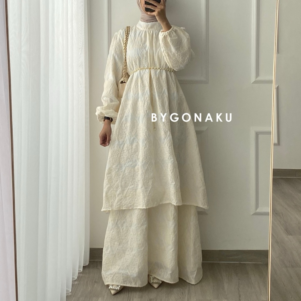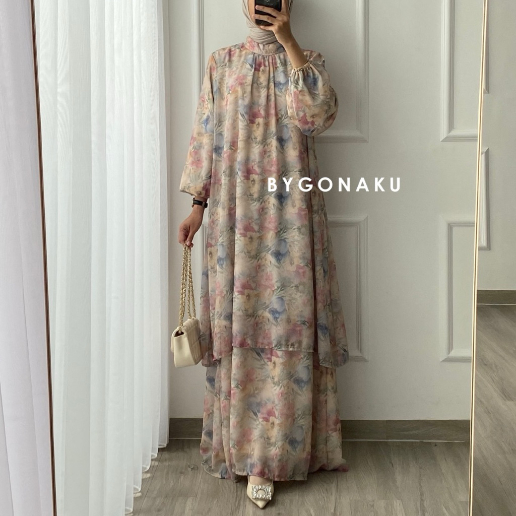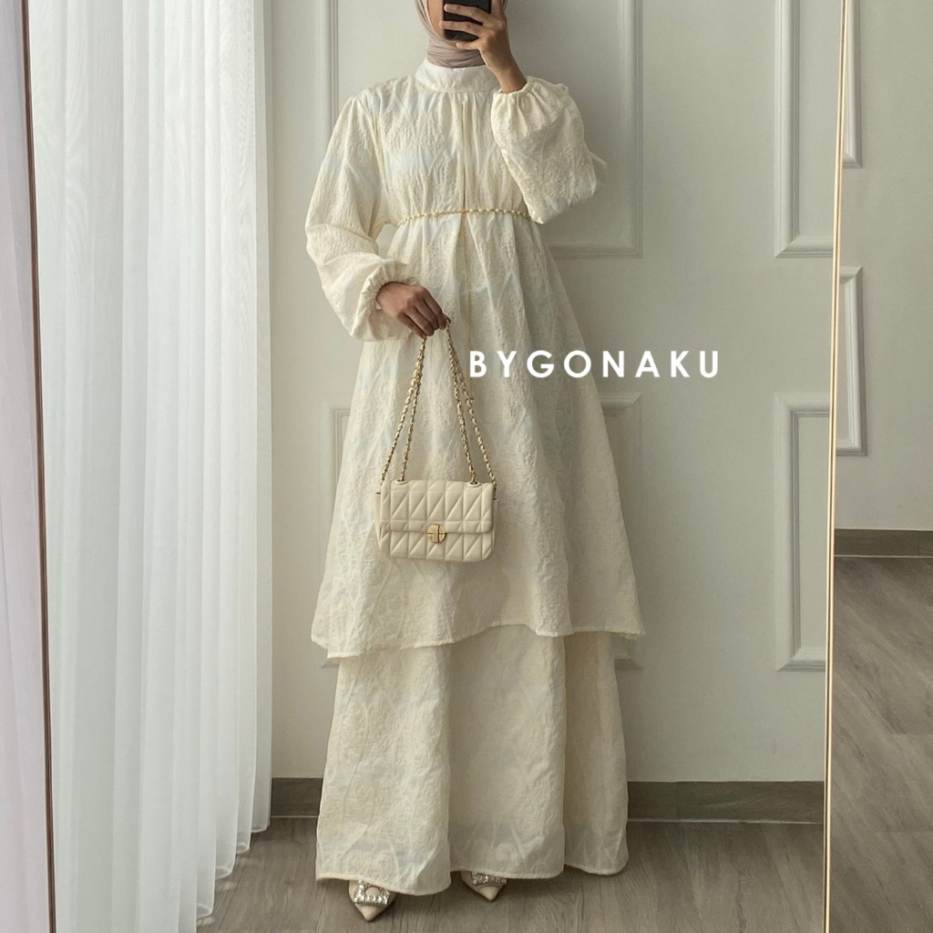 Gonaku Kalifa Signature Raya Dress Katun Bordir Gamis Lebaran Bumil Friendly Maxi Dress Kondangan Full Furing