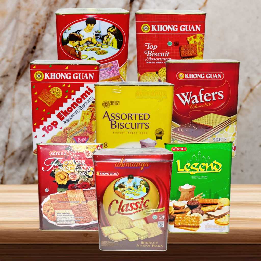 KHONG GUAN 1600 gr, CLASSIC 375 gr, TOP EKONOMI 1150gr, WAFER 1300 gr, NISSIN YELOW 1100gr, TOP ASSORTMENT 1600g, LEGEND 580gr, FLOWER 1000gr