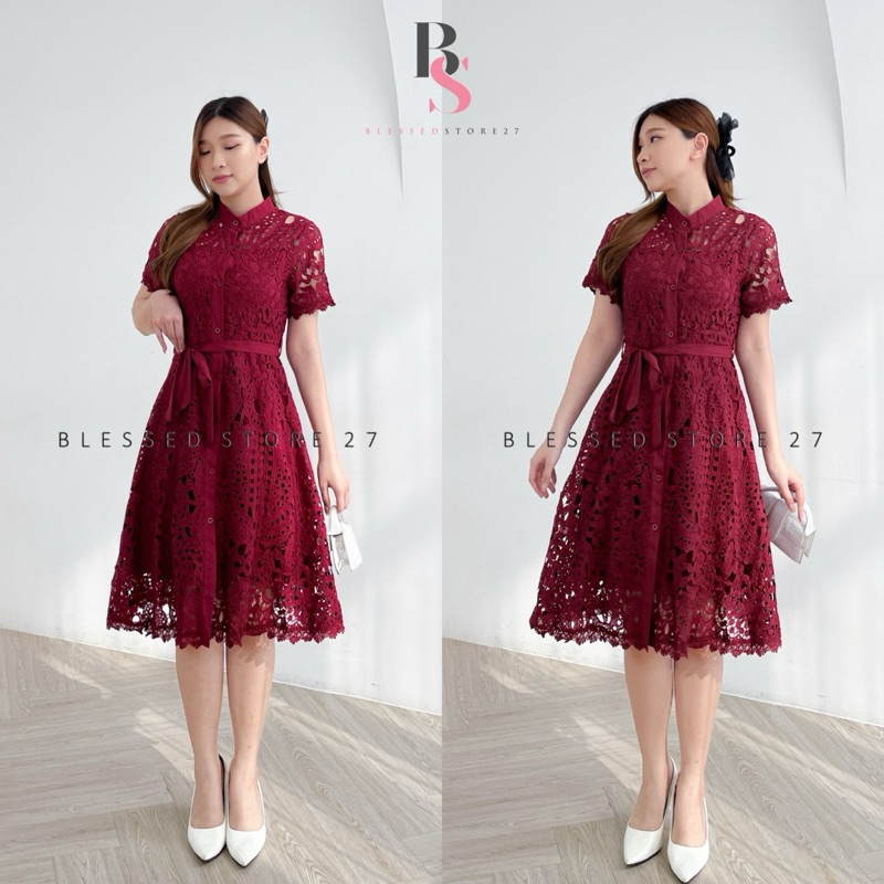 Ada Size Jumbo D0879 Naheedo Premium Korean Style Vintage Midi Dress Natal Busui Pesta Gereja Simple