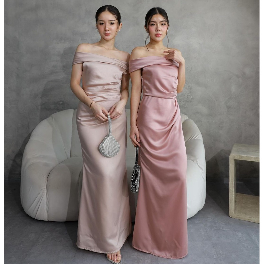 Aurora Satin Dress Korea - Maxi Dress Kondangan - Fit And Flare Dress Pesta Sexy - Bridesmaid Dress Satin - Hadiah / Kad